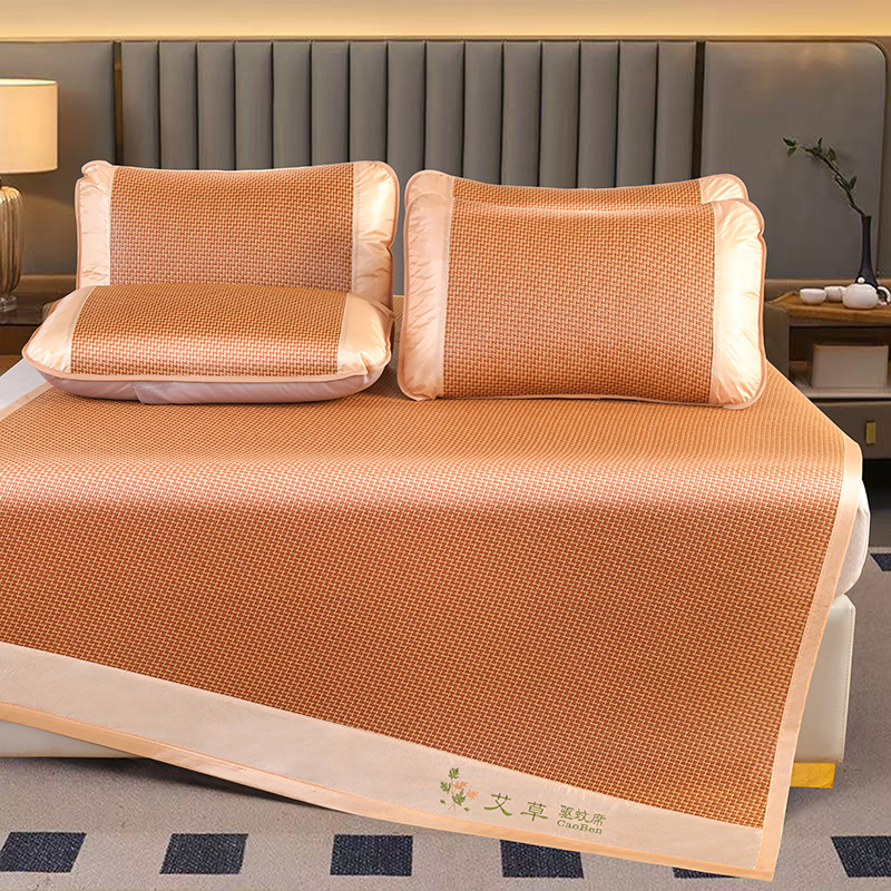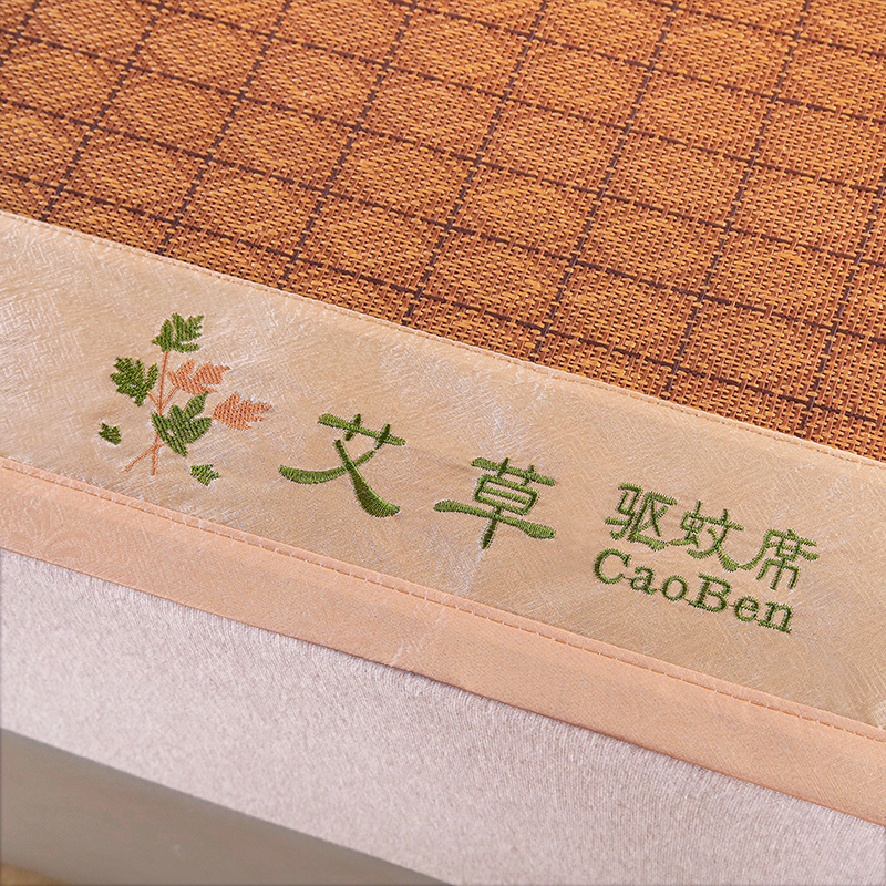 步步高席业 2026新款艾草刺绣宽边凉席藤席 经典格
