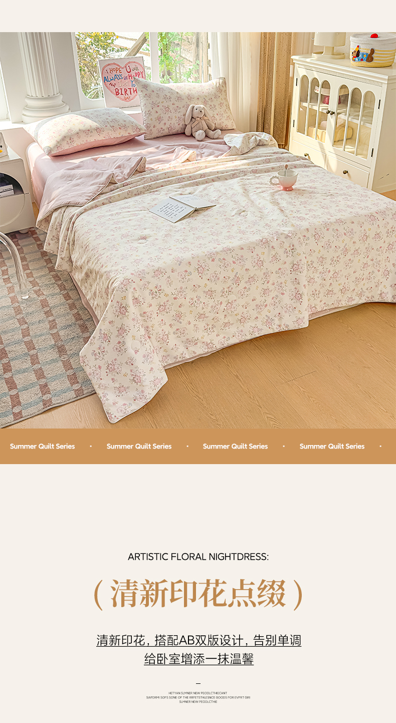 • 91家纺网 家纺一手货源 找家纺 (总)金喜 2026新款100%里外全棉夏被夏被四件套,繁花,花间采趣-咖,洛琳-粉,马到成功,觅时光-兰,南瓜派,碎花拾影-咖,碎花拾影-绿,云汐花絮-粉,云汐花絮-兰