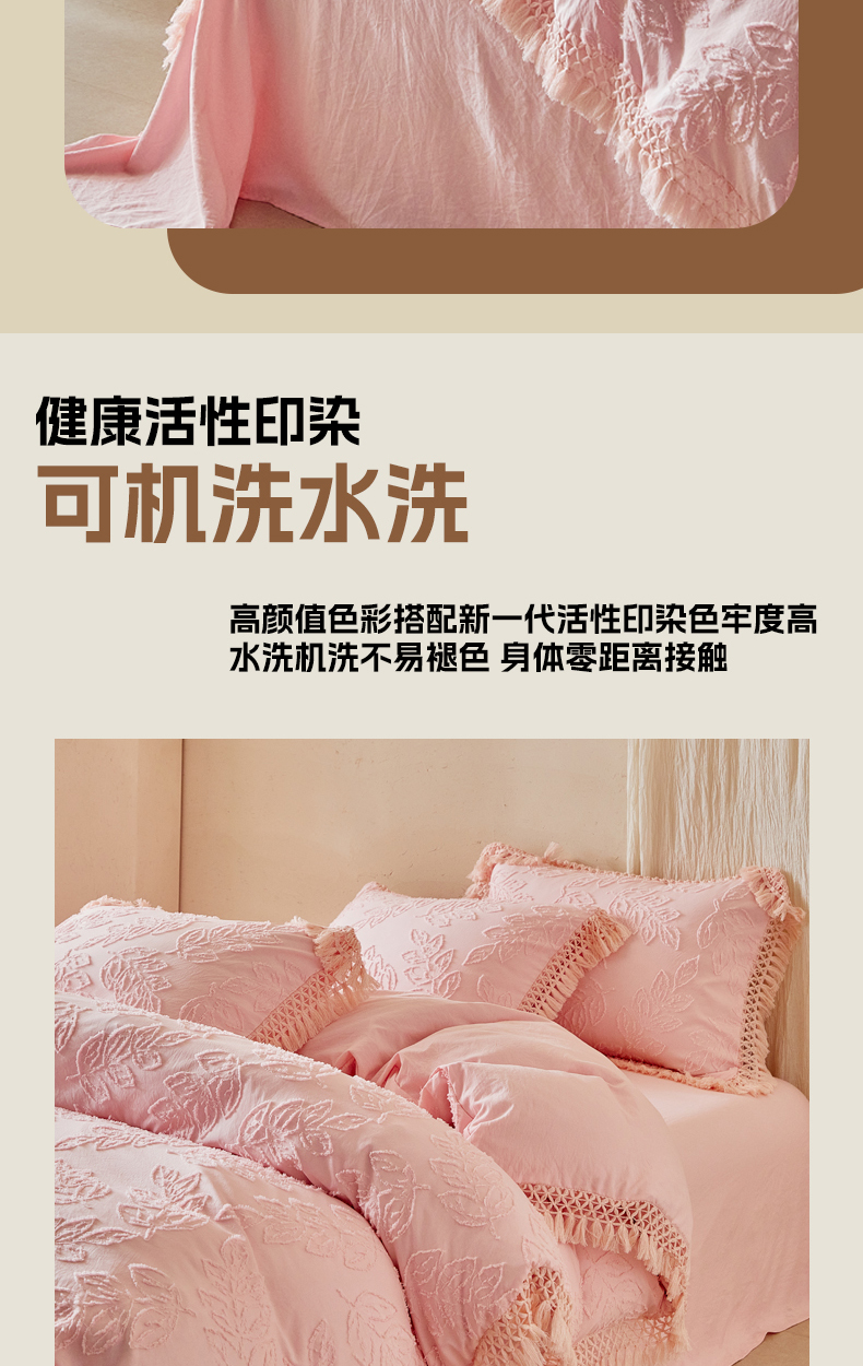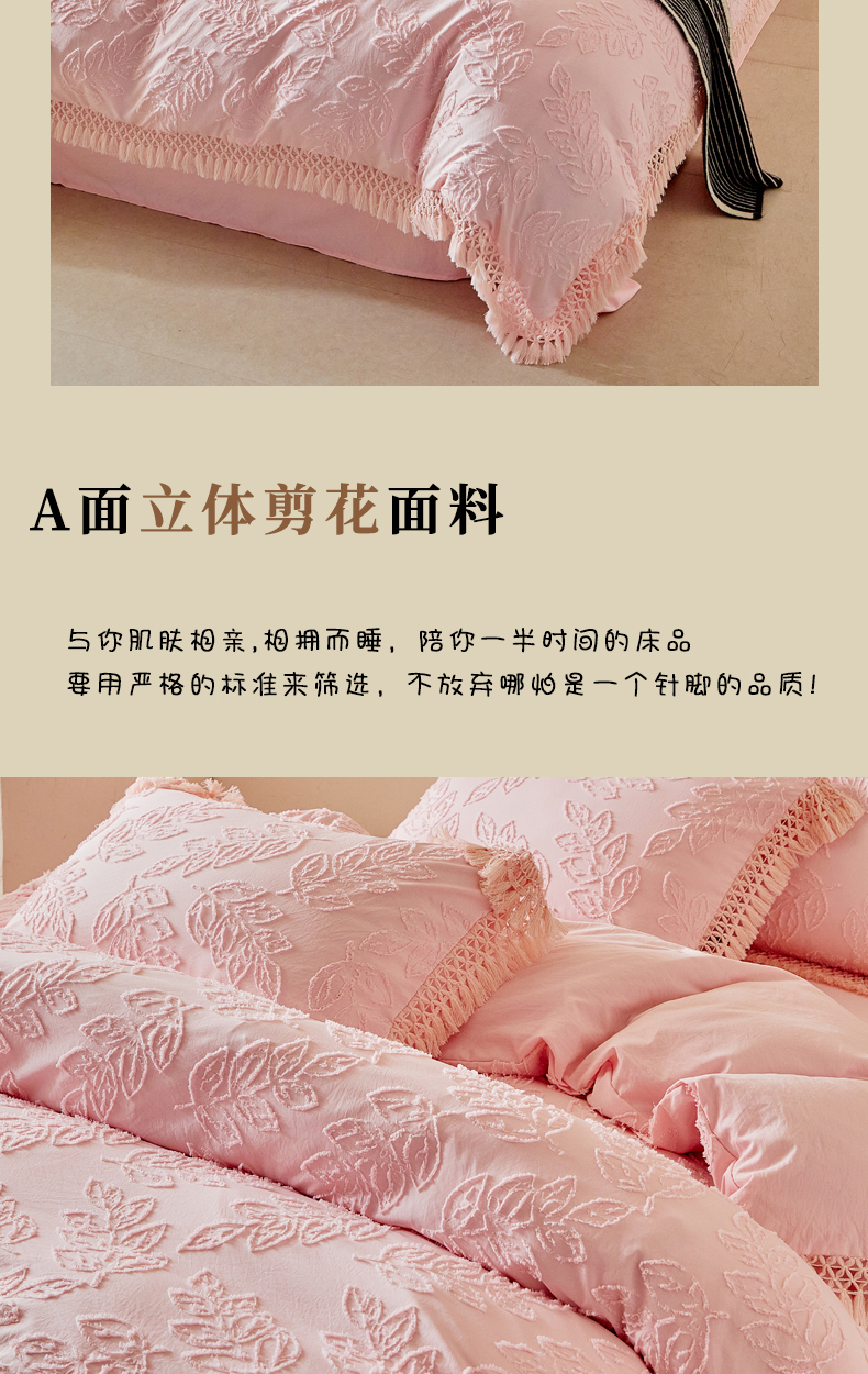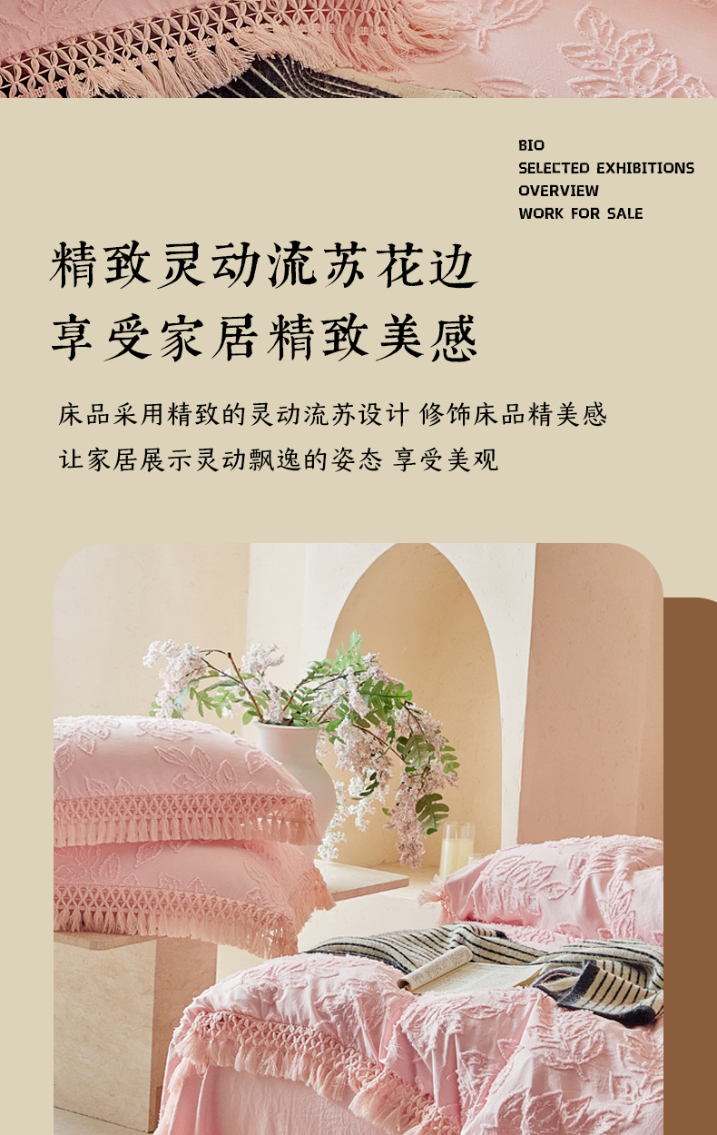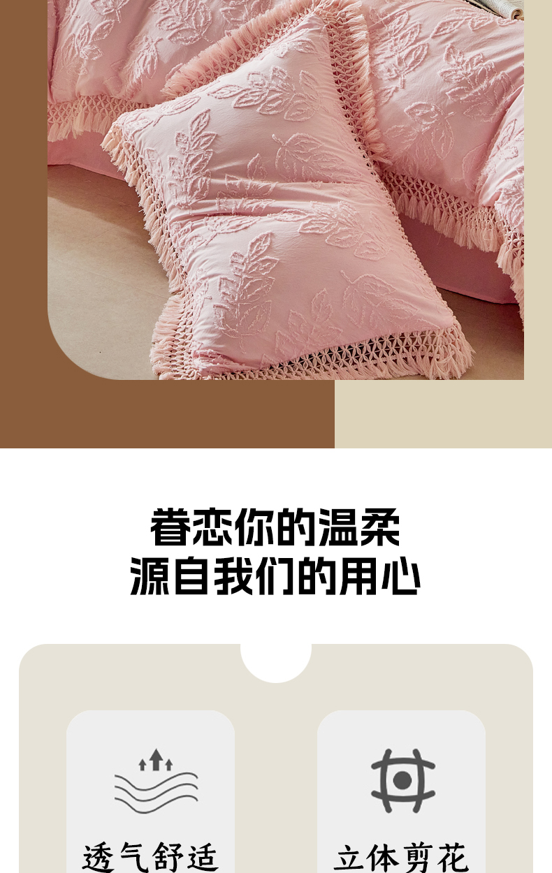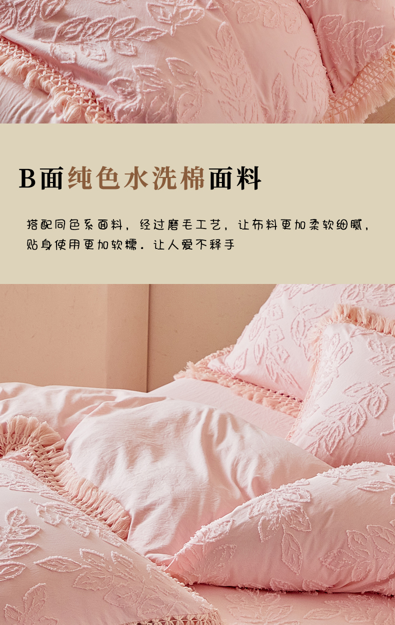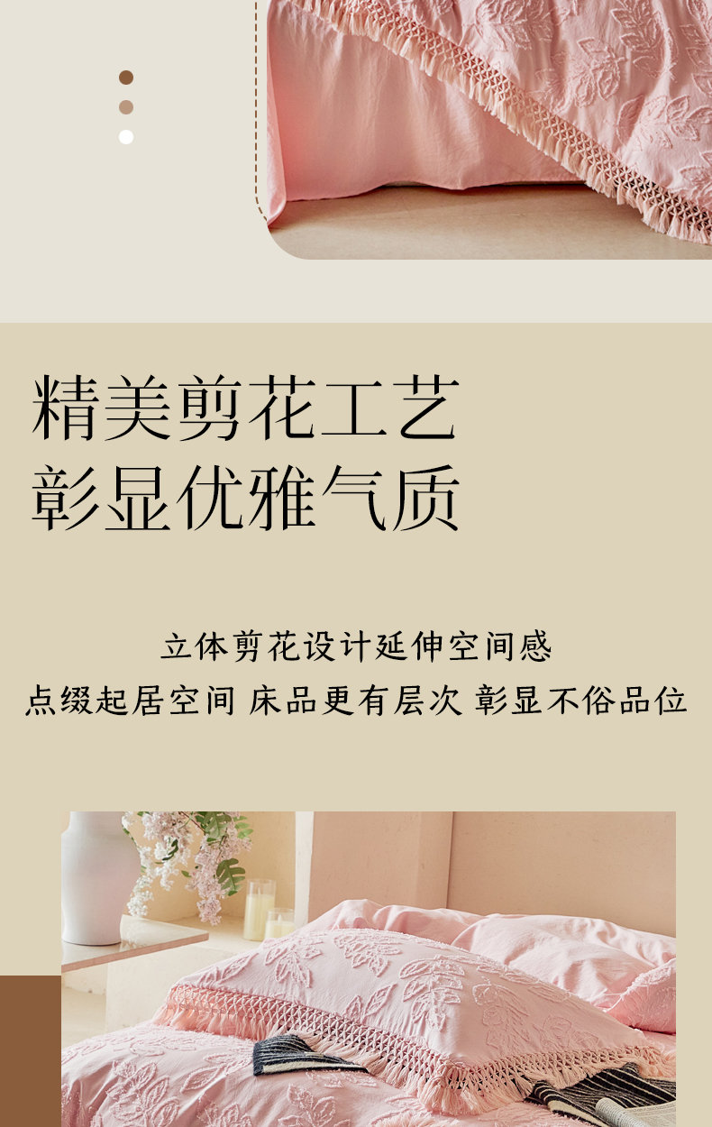当前位置: 91家纺网 > 商品网购 > 床品套件 > 四件套 > 其它四件套 > 缘生活 2026春夏新款民宿立体剪花蝴蝶结流苏四件套 剪花落叶流苏粉色