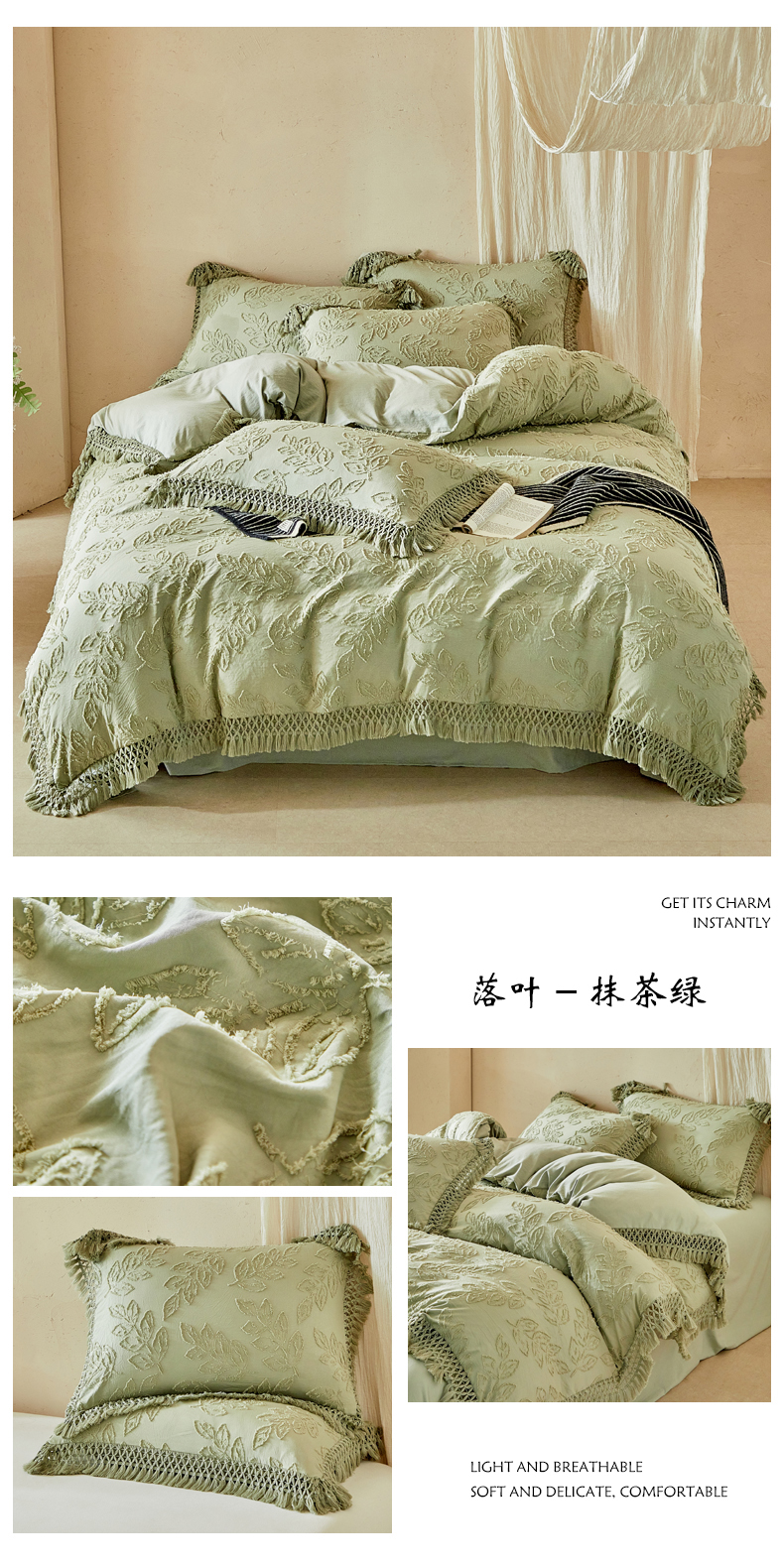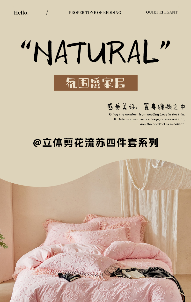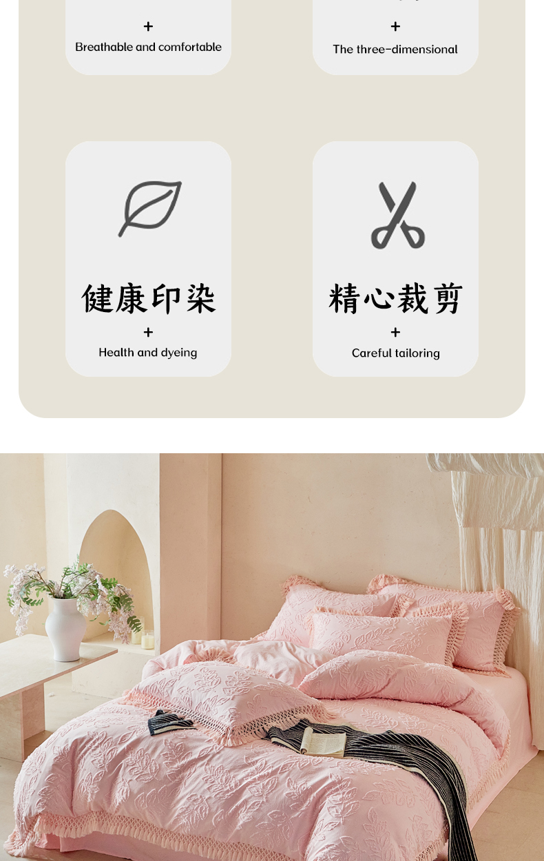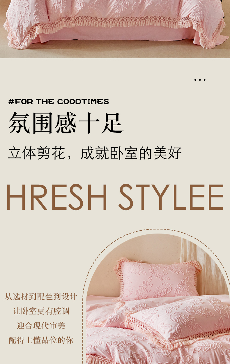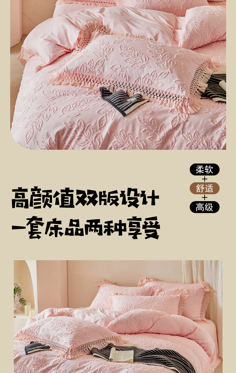 当前位置: 91家纺网 > 商品网购 > 床品套件 > 四件套 > 其它四件套 > 缘生活 2026春夏新款民宿立体剪花蝴蝶结流苏四件套 剪花落叶流苏粉色