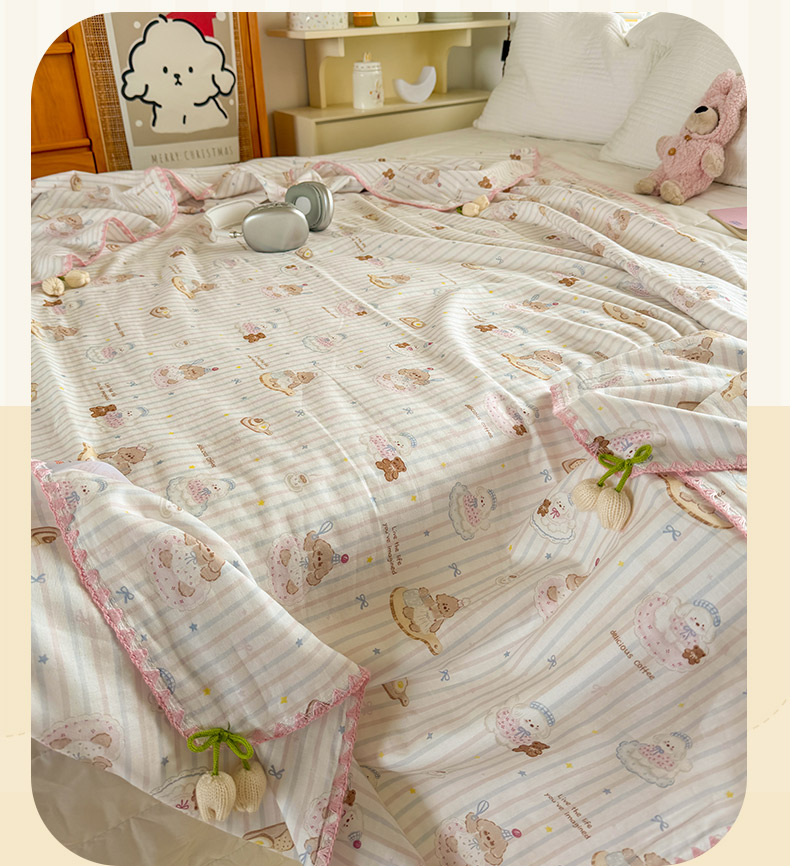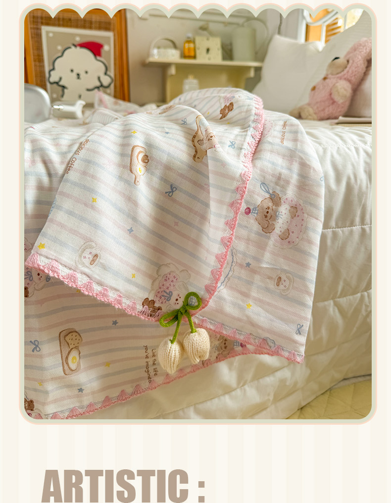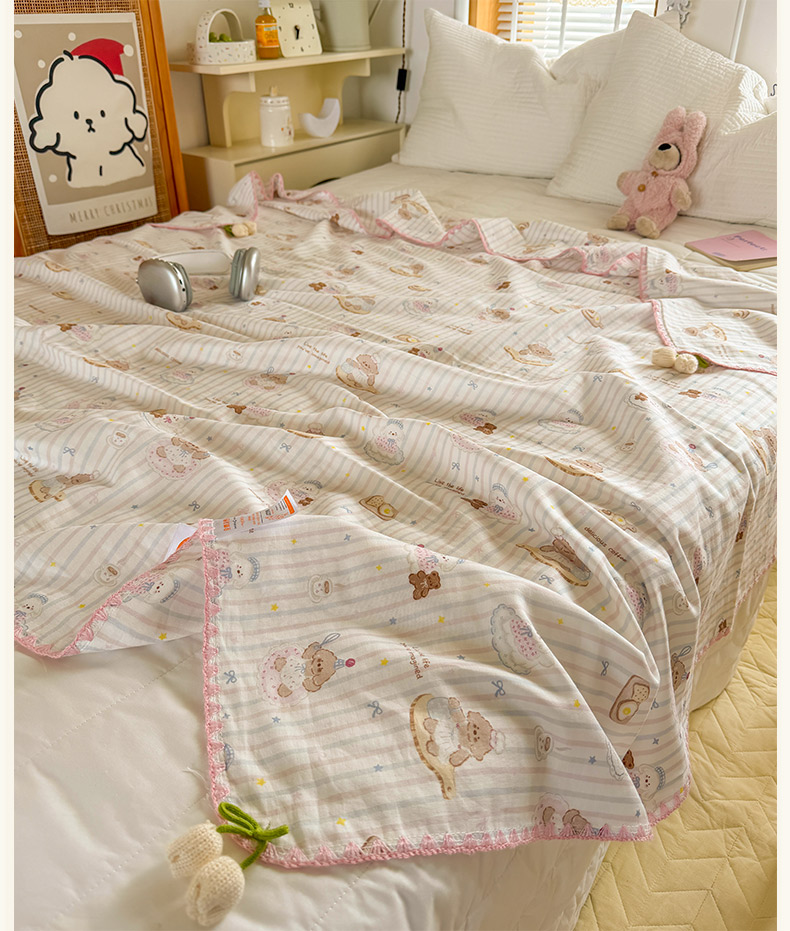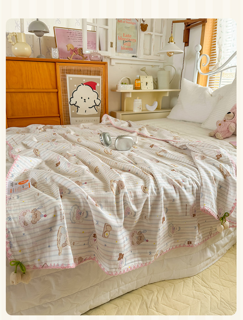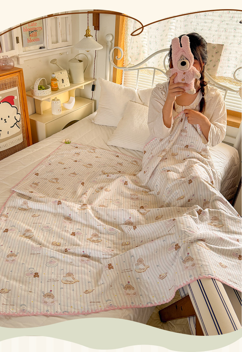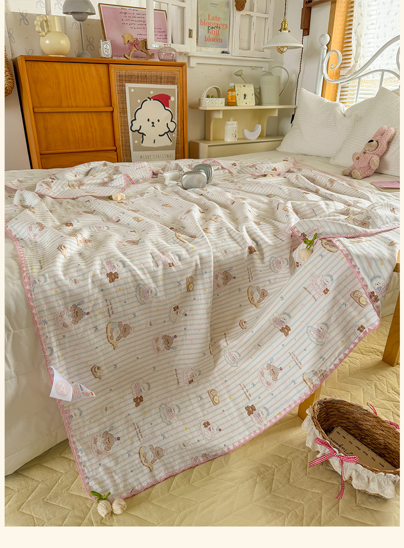 (总)潮邦 2025新款全棉双层纱多功能盖毯,白露-白,背包兔,彩虹糖,车厘子,动物派,秋之花,甜心字母,兔跳跳,兔之园,心怡粉,雨伞兔,棕熊