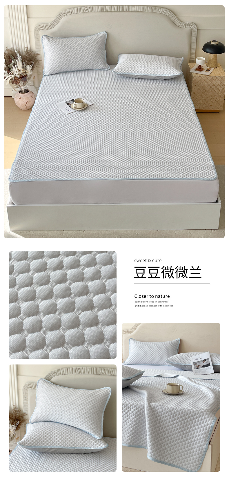 商品名称:(总)莱米家纺 2026新款简约纯色凉豆豆床席款凉席