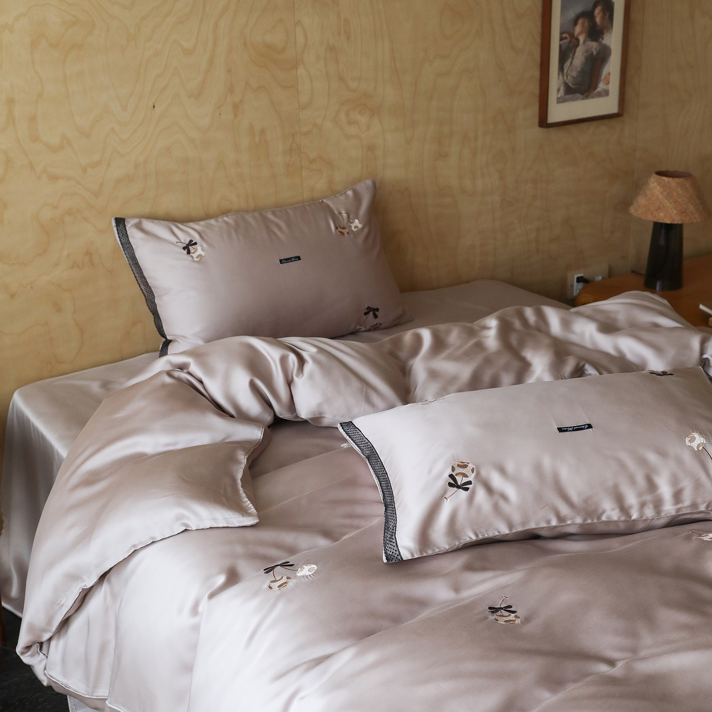 (总)初拾 2026新款60支兰精天丝可爱豹纹四件套-樱梦,樱梦-米白,樱梦-米咖