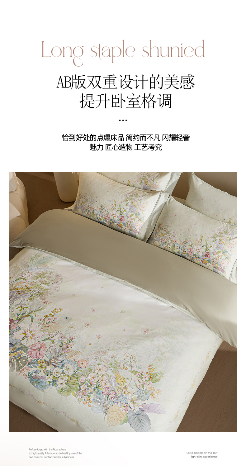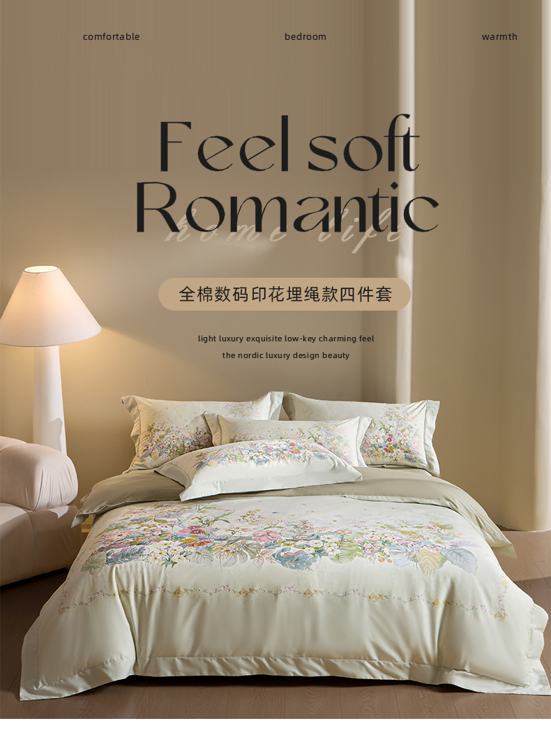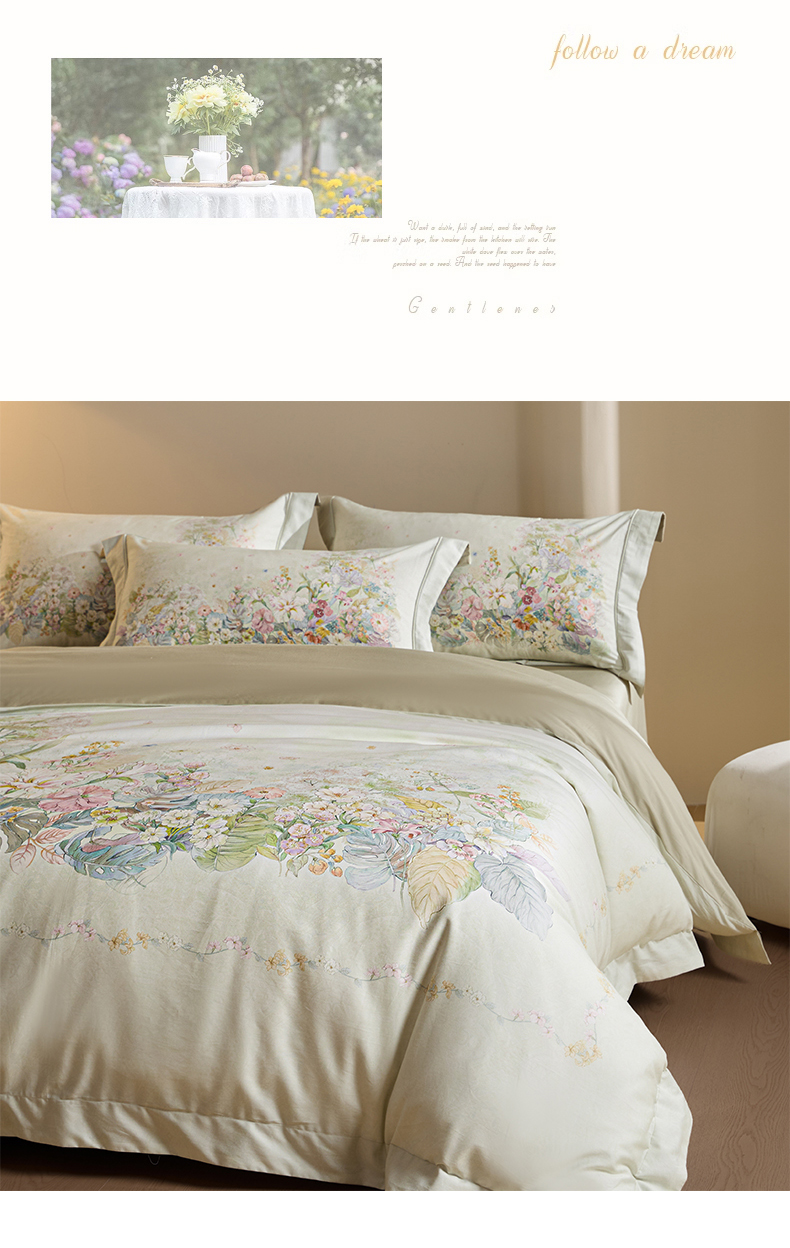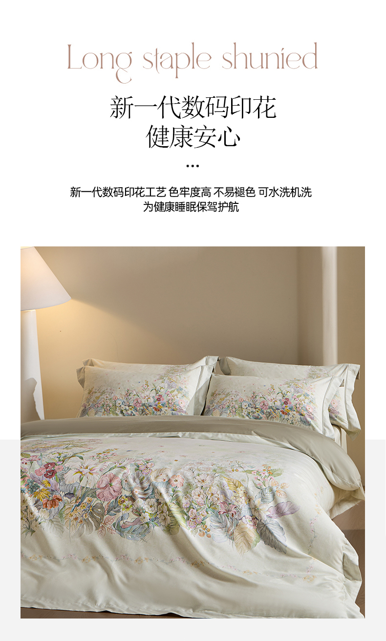 U品汇 2026新品纯棉全棉平网大版数码印花四件套高端60支长绒棉贡缎埋绳宽边系列 芷柔(绿)