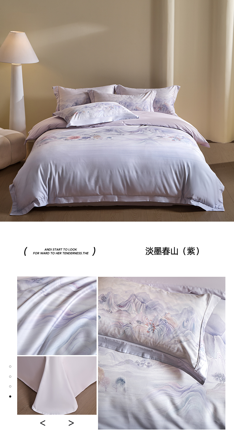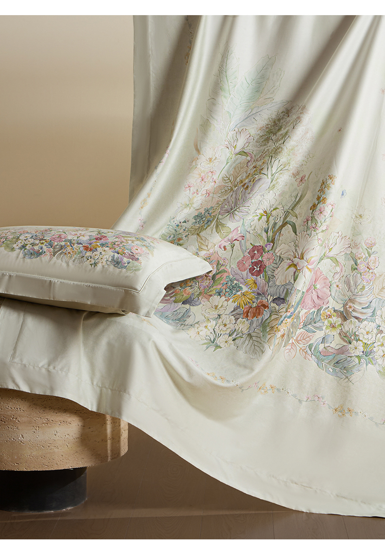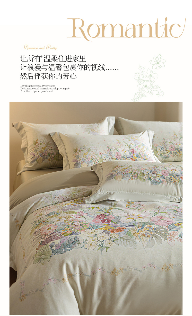 U品汇 2026新品纯棉全棉平网大版数码印花四件套高端60支长绒棉贡缎埋绳宽边系列 芷柔(绿)