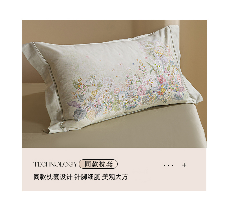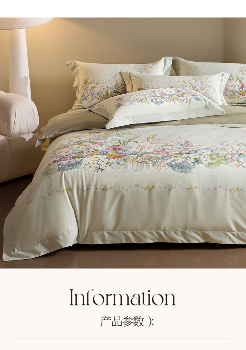 商品名称:U品汇 2026新品纯棉全棉平网大版数码印花四件套高端60支长绒棉贡缎埋绳宽边系列 芷柔(绿)