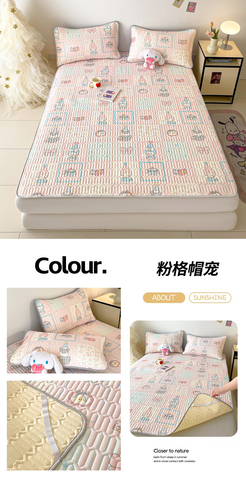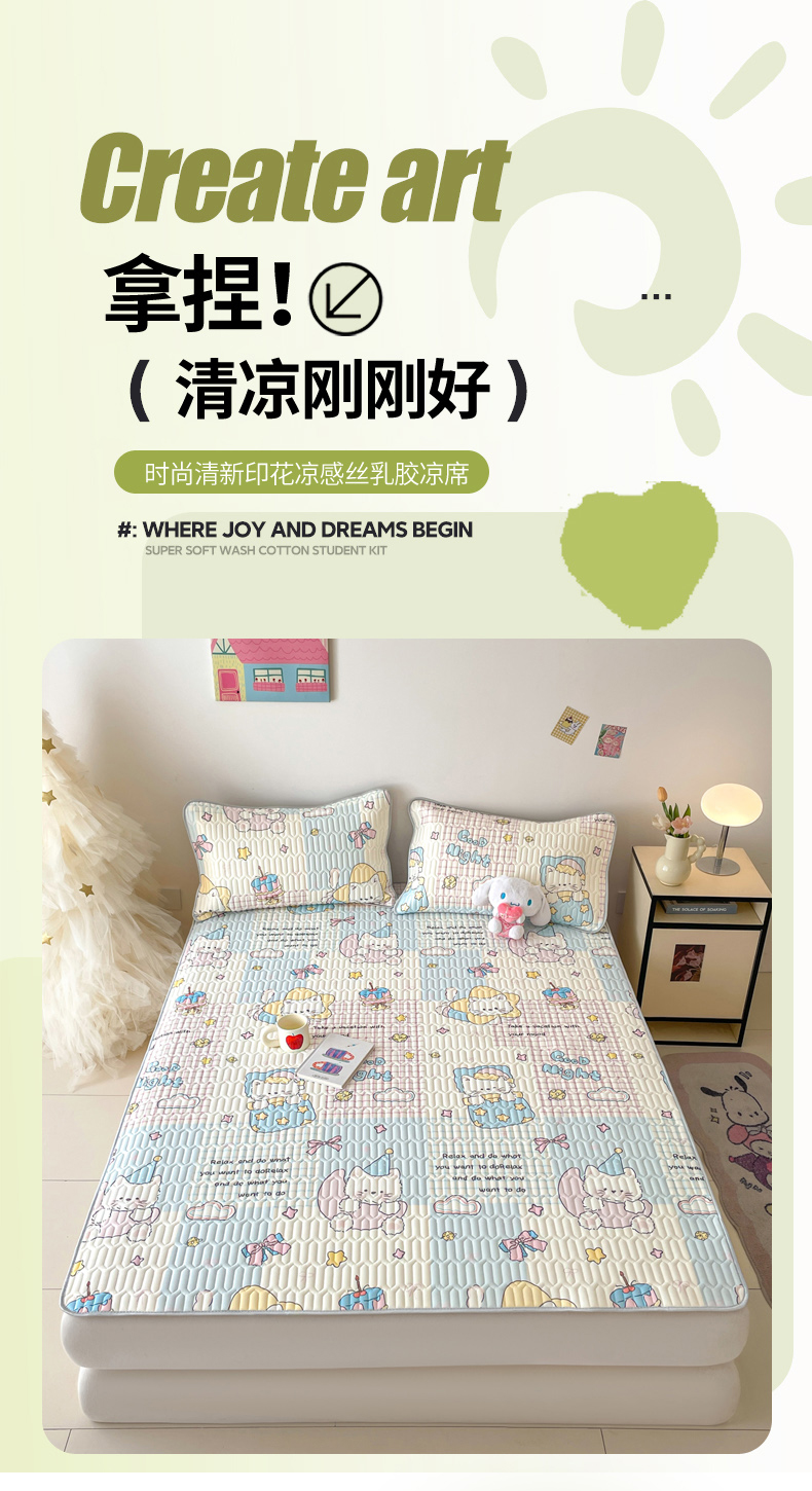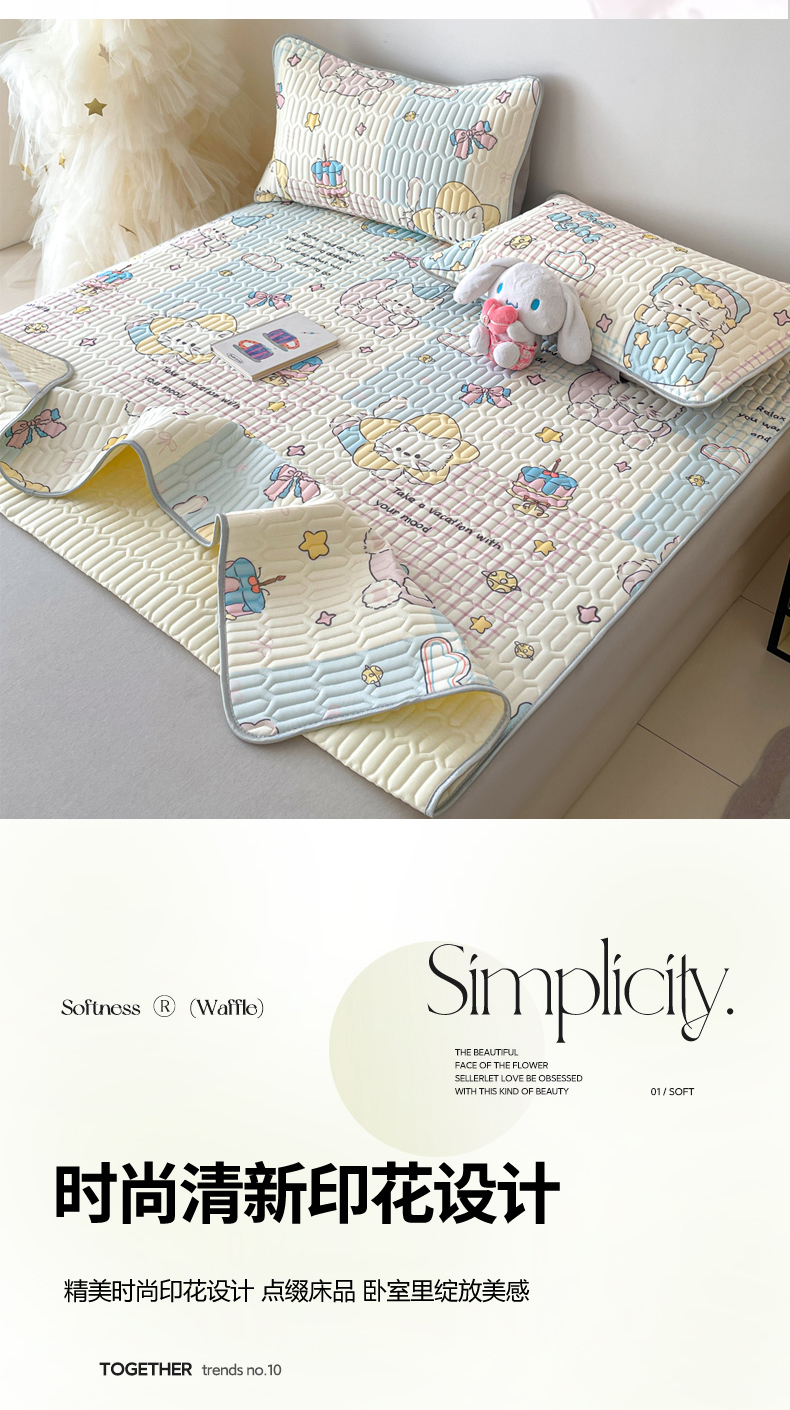 (总)沐慕 2026新款小清新凉感丝乳胶凉席三件套,爱心小兔,花花粉兔,萌萌鸭,萌宠礼物,豹纹小兔,萝莉猫,腊肠狗,粉格帽宠,三小只,森系兔,碎花小猫,糖果甜梦园,天使星星人,晚安拼格猫,樱桃萌猫,郁金香,云朵小熊