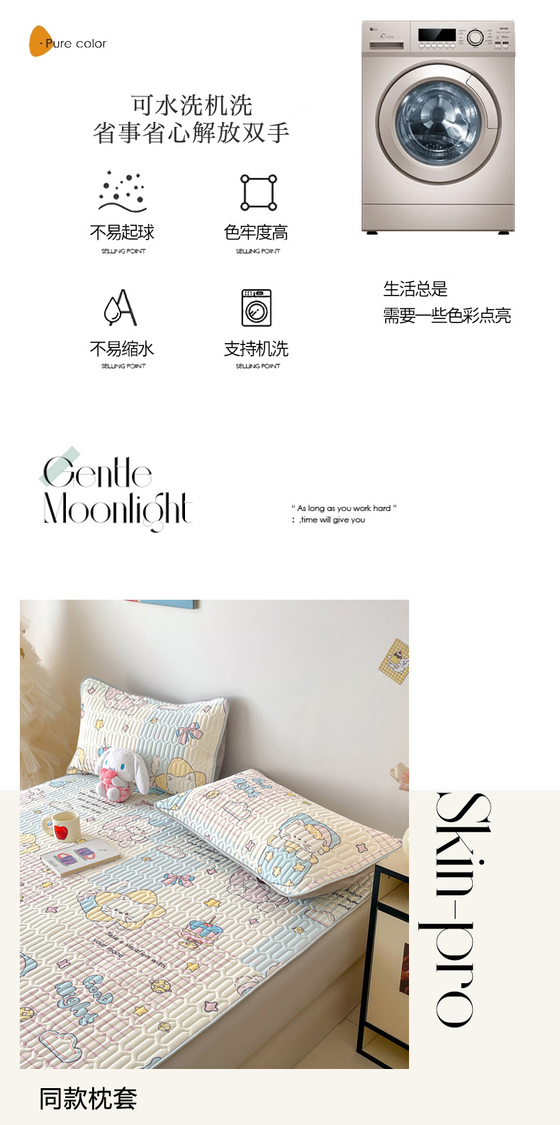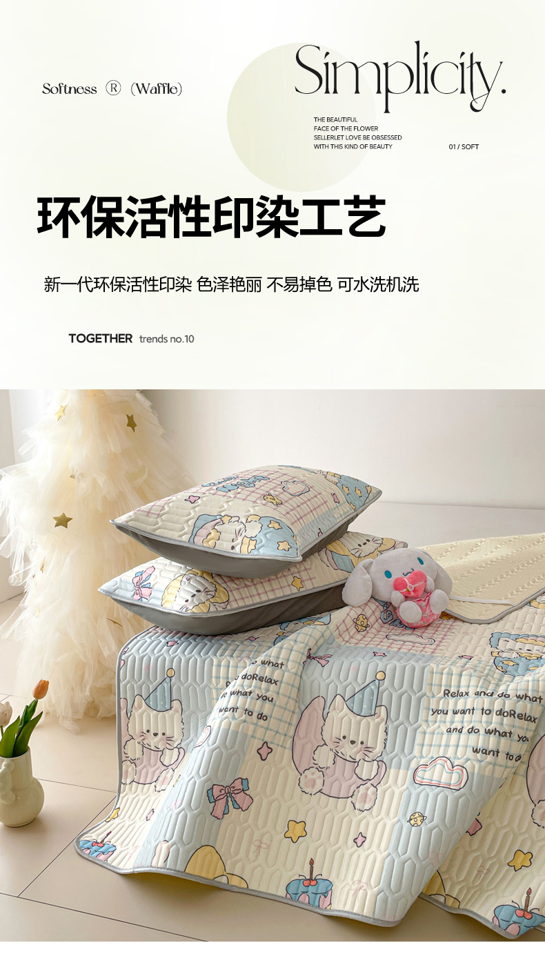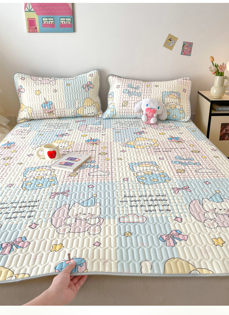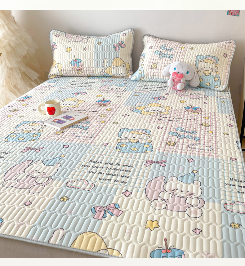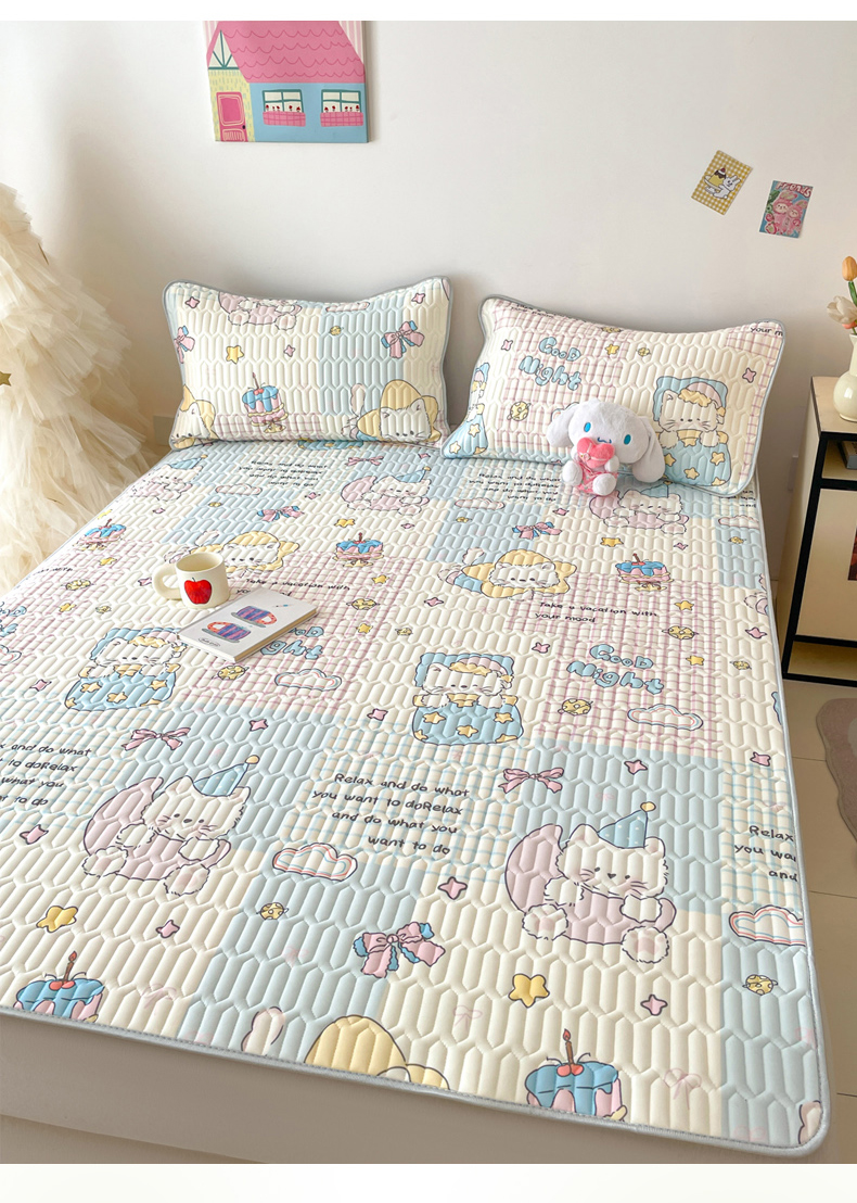 商品名称:沐慕 2026新款小清新凉感丝乳胶凉席三件套 晚安拼格猫