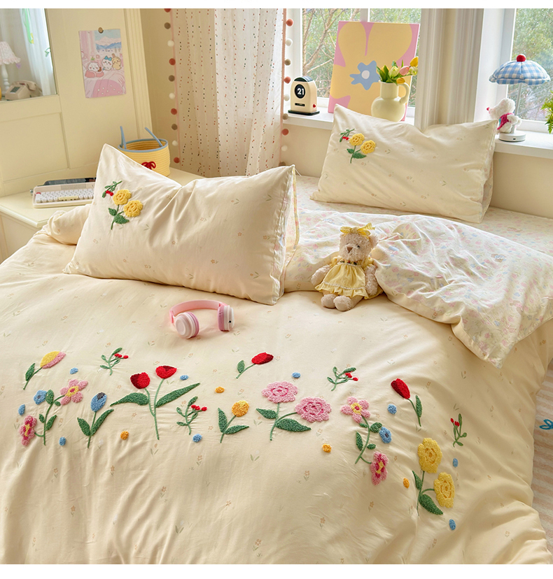 商品名称:乐童家纺 2026新款13370全棉纯棉毛巾绣呆萌系列四件套第二波 芳草集