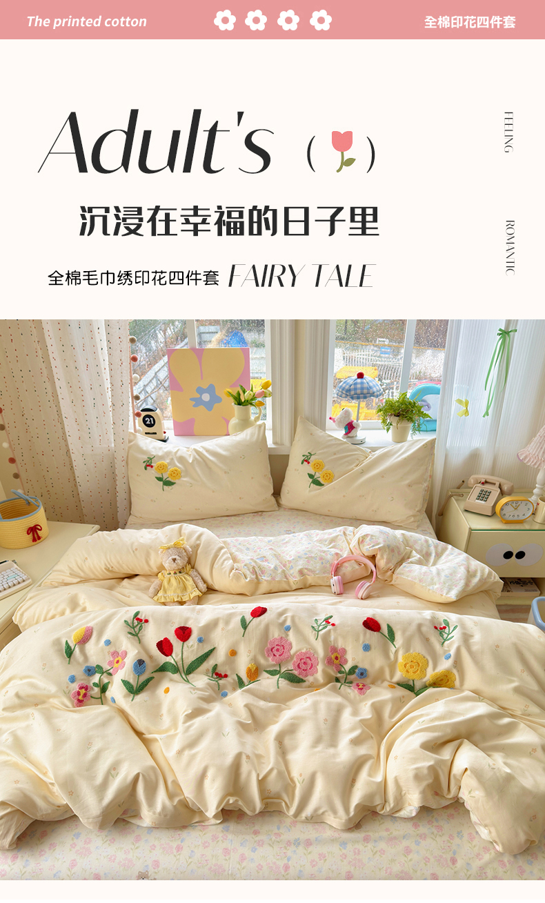 乐童家纺 2026新款13370全棉纯棉毛巾绣呆萌系列四件套第二波 芳草集