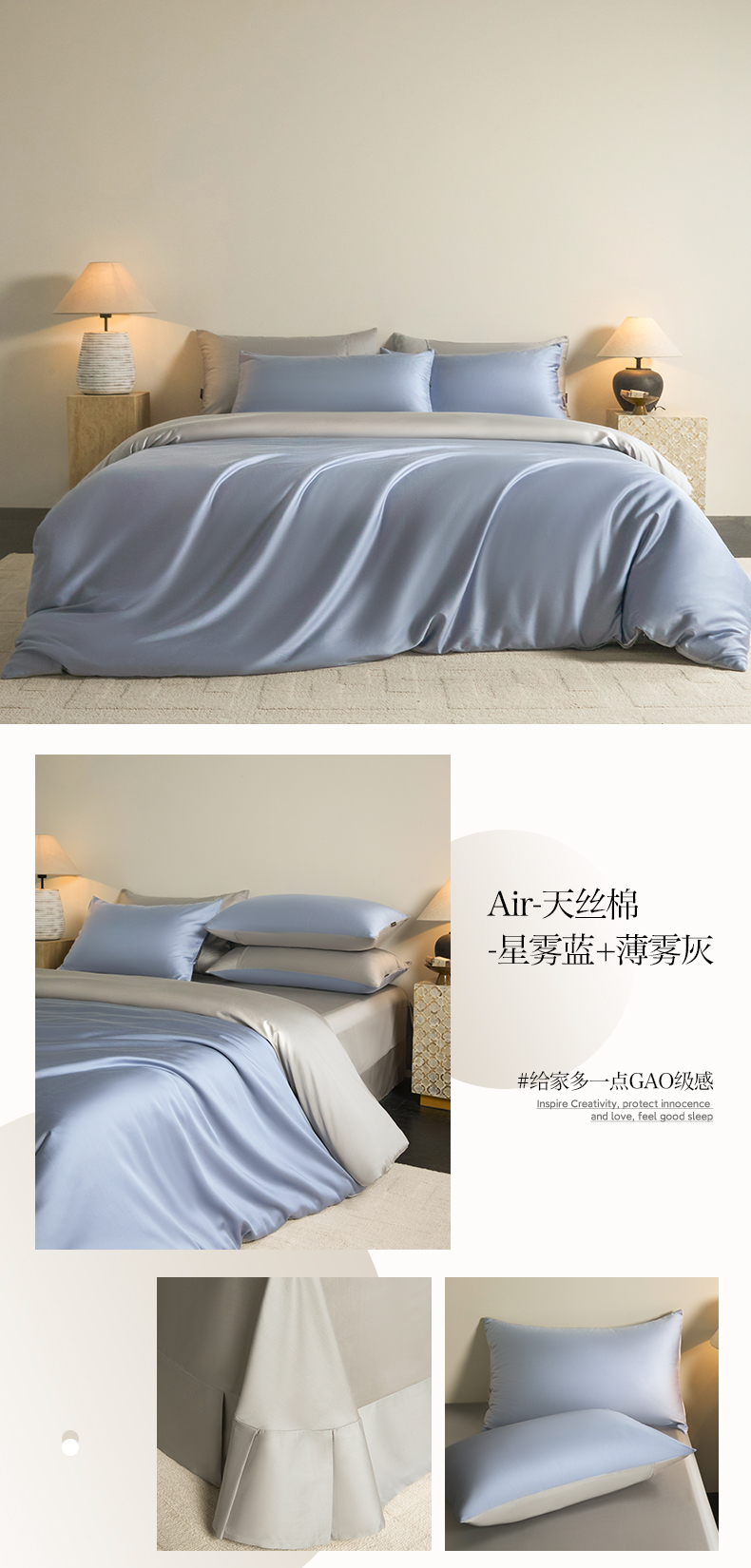 (总)秀色家纺 2026新款60S进口天丝贡缎新疆长绒棉纯色轻奢四件套,Air-天丝棉-抹茶奶白,Air-天丝棉-幻影灰,Air-天丝棉-幻影灰+薄雾灰,Air-天丝棉-迷雾紫+幻影灰,Air-天丝棉-奶白抹茶,Air-天丝棉-桃灰粉+幻影灰,Air-天丝棉-桃灰粉+迷雾紫,Air-天丝棉-温柔奶咖,Air-天丝棉-星雾蓝,Air-天丝棉-星雾蓝+薄雾灰