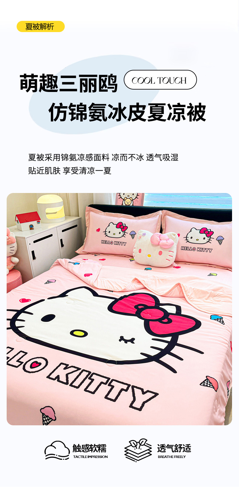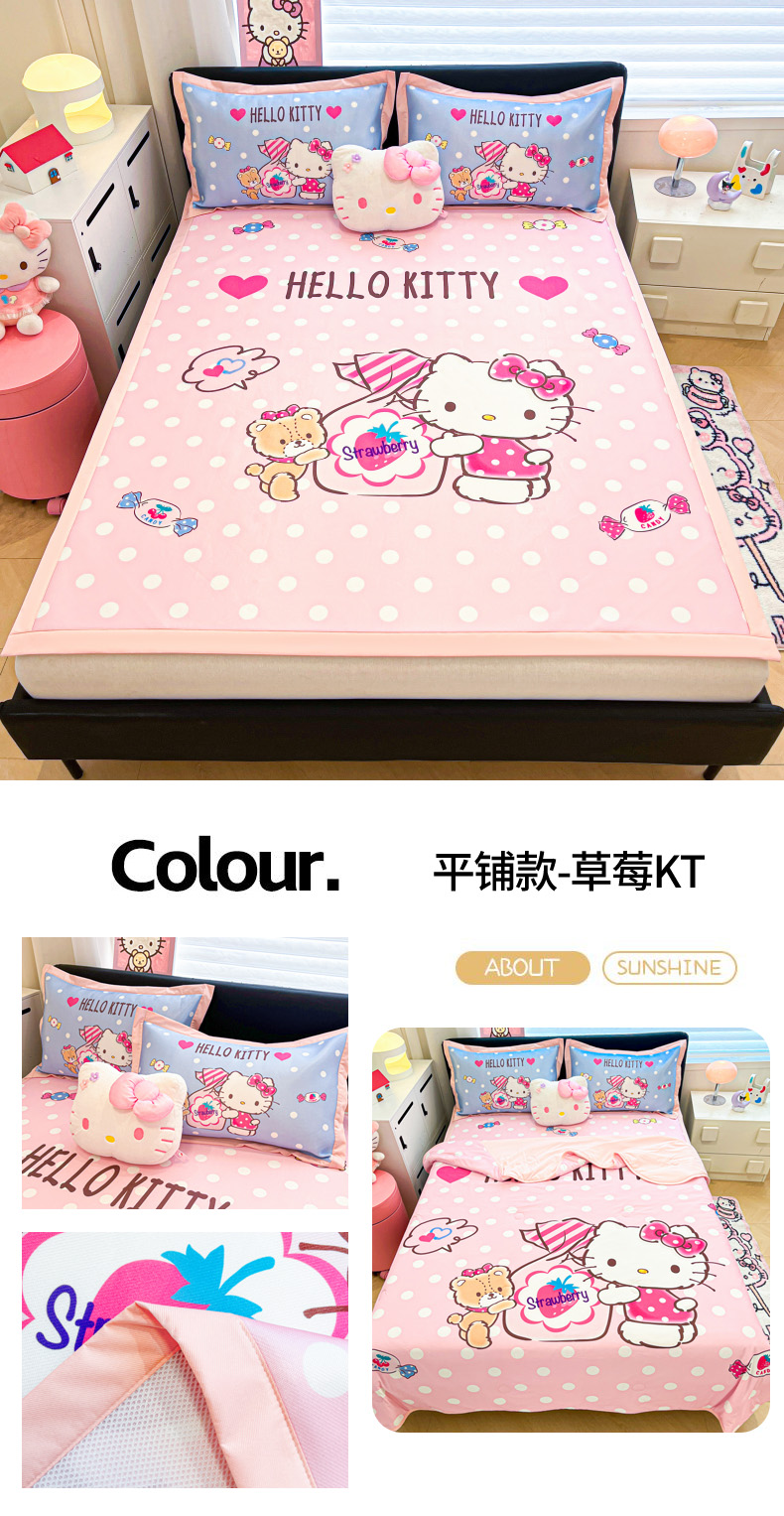 当前位置: 91家纺网 > 商品网购 > 床上用品 > 凉席 > 冰丝席 > 暮思家居 2026新款正版授权A类大版数码印花三丽鸥1200D冰丝凉席可组合仿锦氨夏被 平铺款-甜筒KT