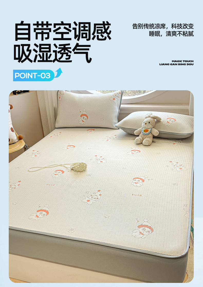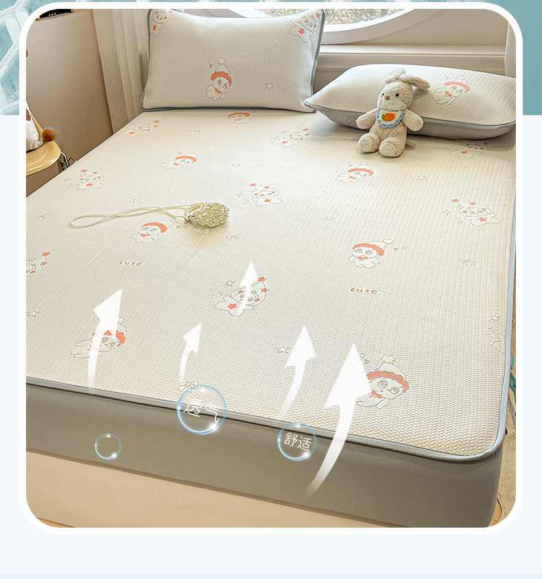(总)天之澜家纺 2026新款PE凉豆豆凉席小红书热卖款A类冰豆豆凉席三件套可水洗豆豆凉席-床笠款,福多多,国宝,快乐小熊,平步青云,甜心草莓,象小萌,小喵喵,星星人,幸运小马,郁金香之恋,熊宝宝,招财猫