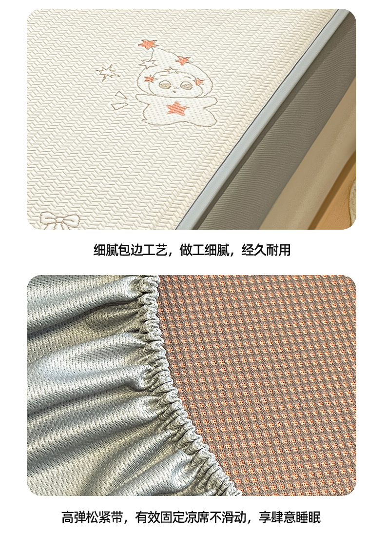 天之澜家纺 2026新款PE凉豆豆凉席小红书热卖款A类冰豆豆凉席三件套可水洗豆豆凉席-床笠款 星星人