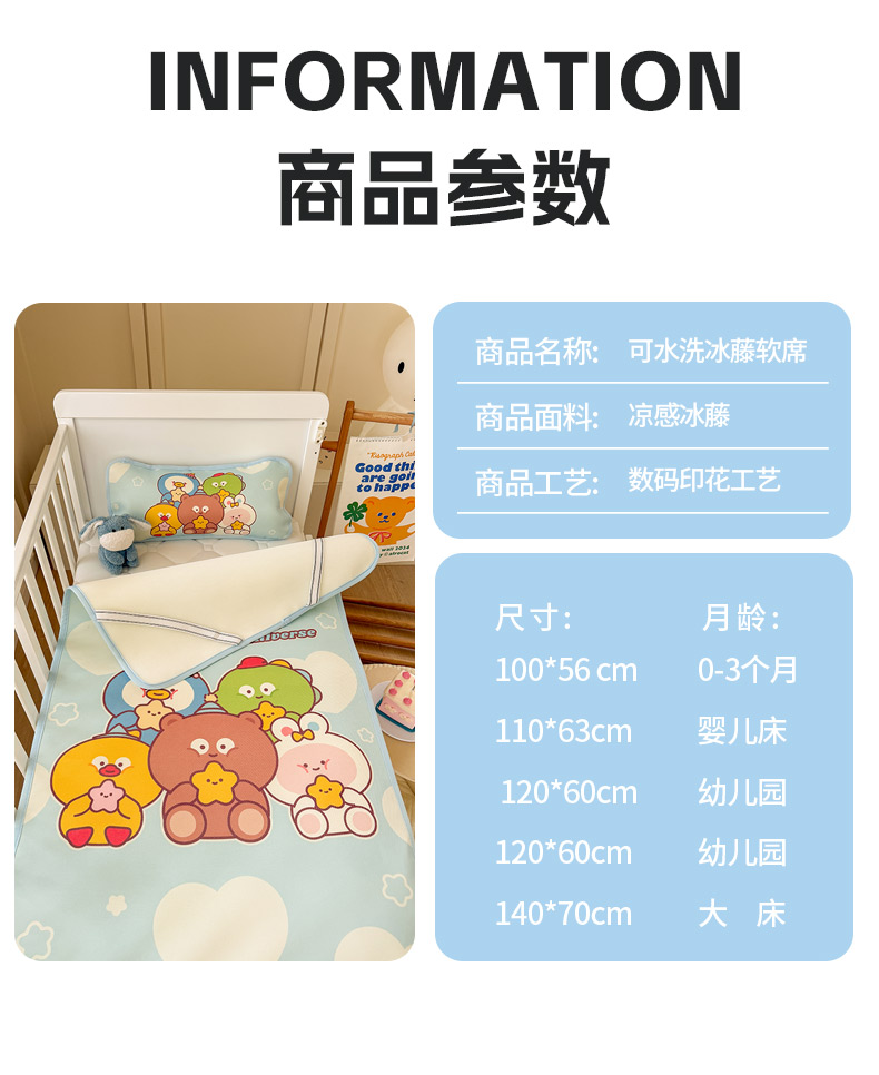 当前位置: 91家纺网 > 商品网购 > 床上用品 > 凉席 > 其他凉席 > 潮邦创意家居 2026新款A类婴童可水洗冰藤软席-巴波布布系列【含A类检测报告】 啵啵团