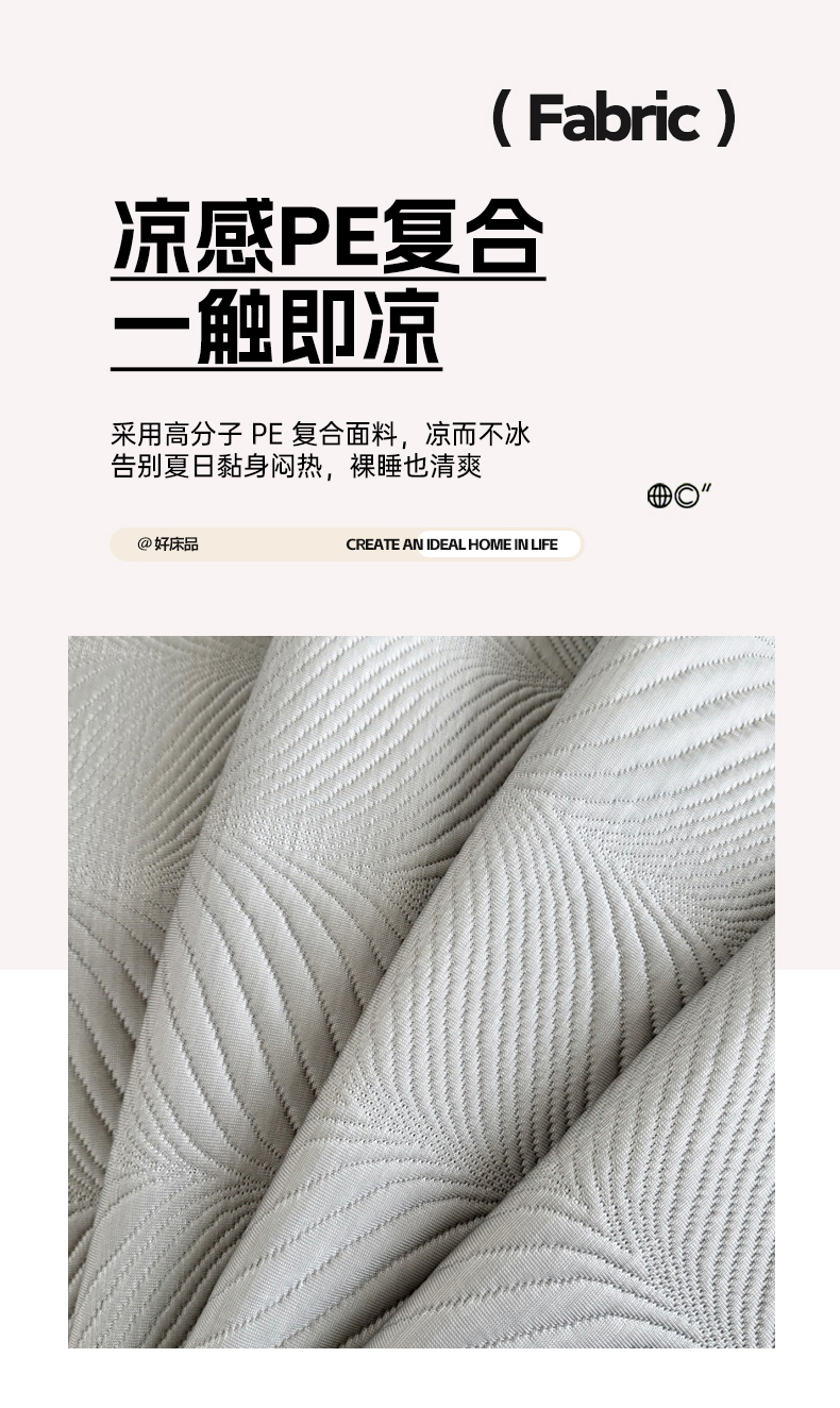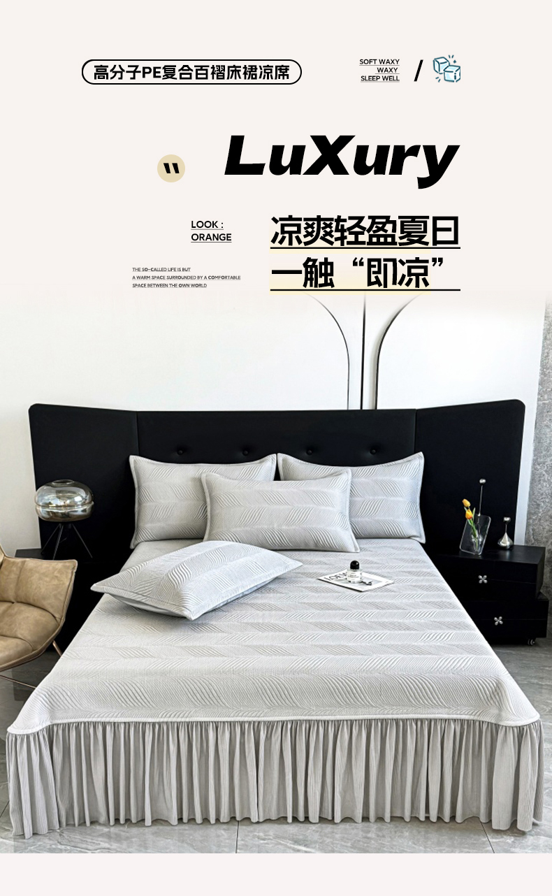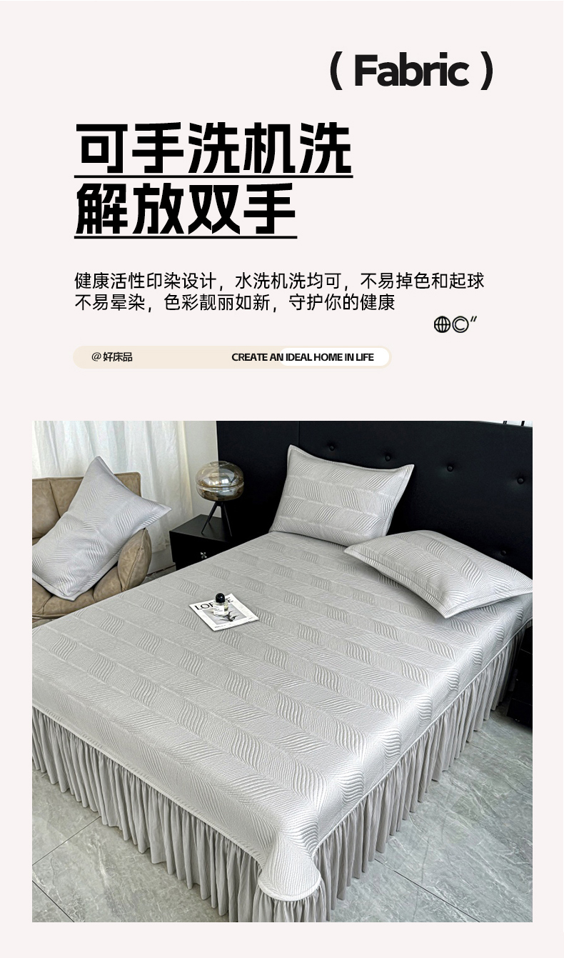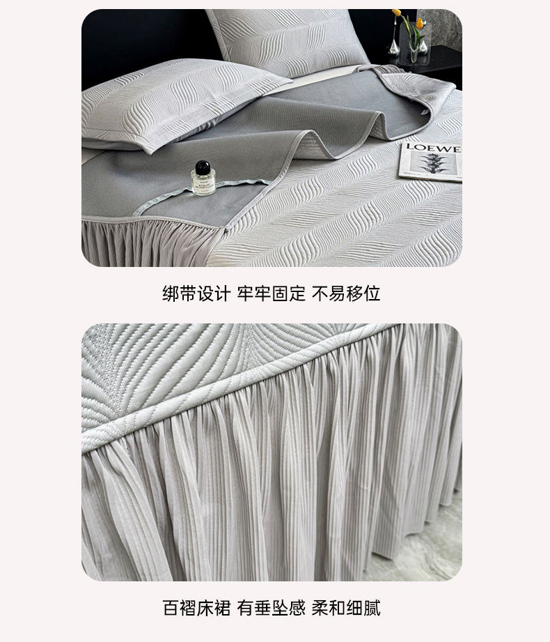 商品名称:金绣美居 2026新款高分子PE复合压褶床裙凉席-冰川 冰川-灰色
