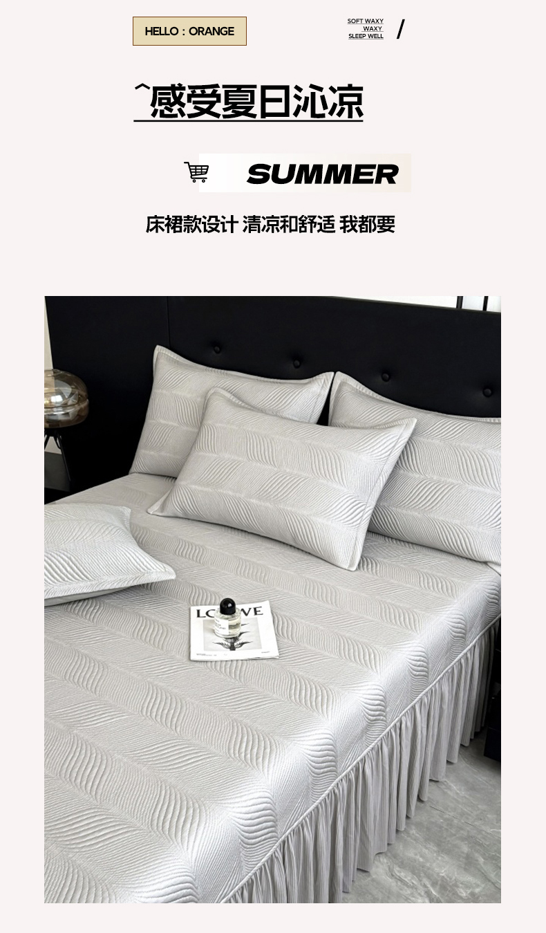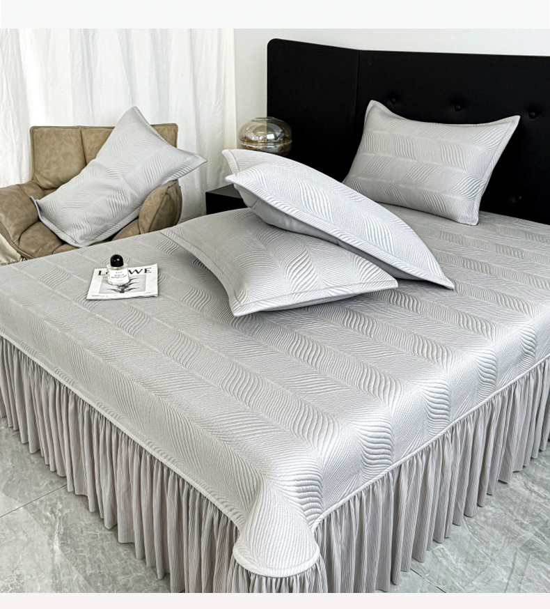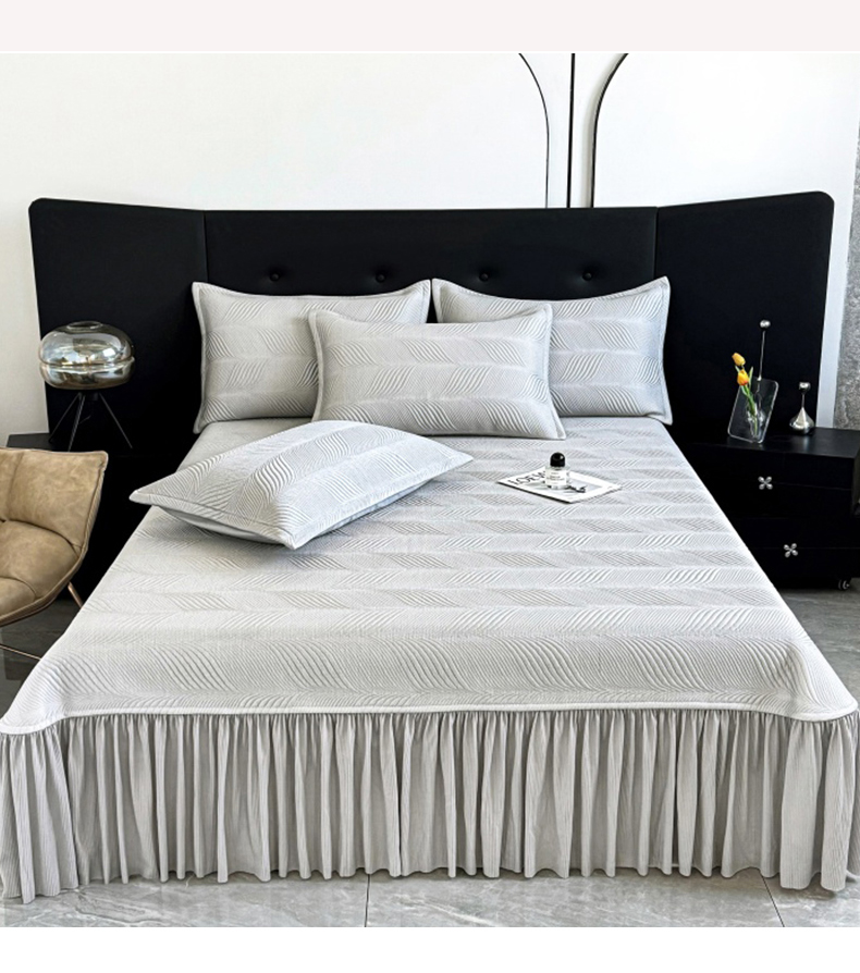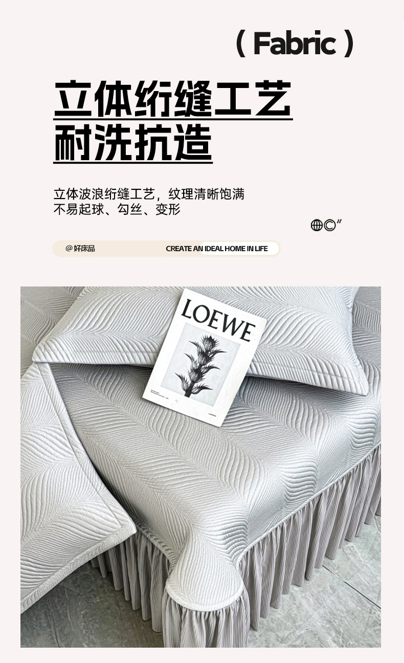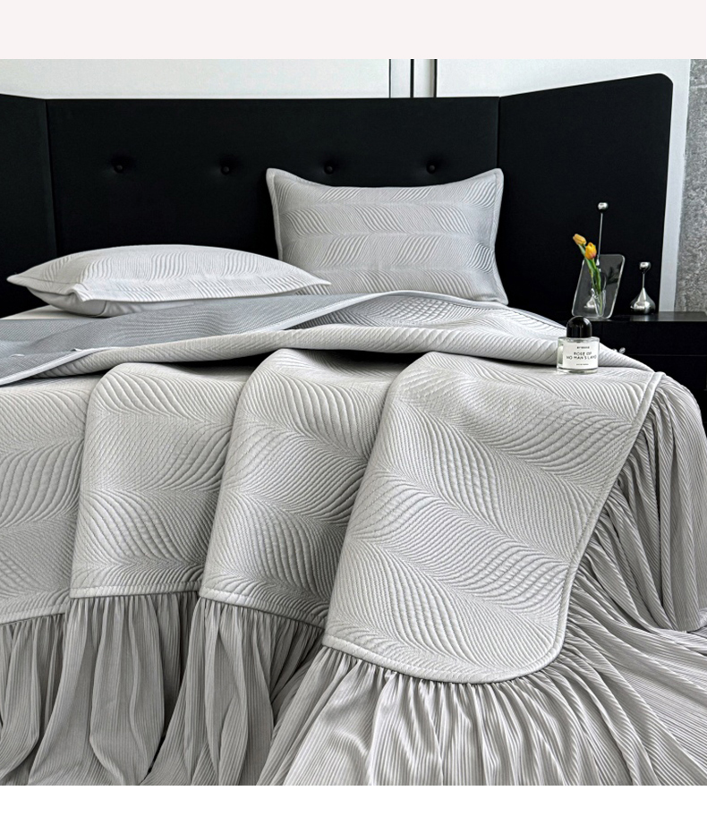 商品名称:金绣美居 2026新款高分子PE复合压褶床裙凉席-冰川 冰川-灰色