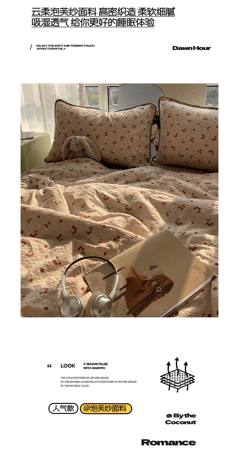 (总)贝扬思家纺 2026新款高品质A类泡芙纱普通款四件套-110g-(软软糯糯小红书推荐~),奥利奥小猫,春日甜桃心-米‘,蝶栖柔花-黄,躲猫猫,格格心,花镜人偶 - 黄,花有花期,黄粉团猫,灰樱桃,旧街星星,咖啡小猫,蓝领结狗,蕾丝花匣,栗色木马纹,马上有钱,猫咪集-粉,猫系字母,萌兔岛屿,萌星奇遇,朦胧粉心,魔法星星,木马小花团,浅川纹,日光漫游,柔花,柔诗意,柔紫碎花屿,软紫格猫,四季狗,松间茶事,田园兔,甜喵块块,甜品萌狗,甜心蓝絮,甜心木马卷,微笑彩心,豹纹咪星 蓝,雾屿蔷薇,小猫拉车,星芒凯蒂,星星糖豆,摇摇木马,悦悦小兔,摘星星人,织纹木马迹,花间娃娃絮,花径小狗团,凌晨信件,甜卷兔兔