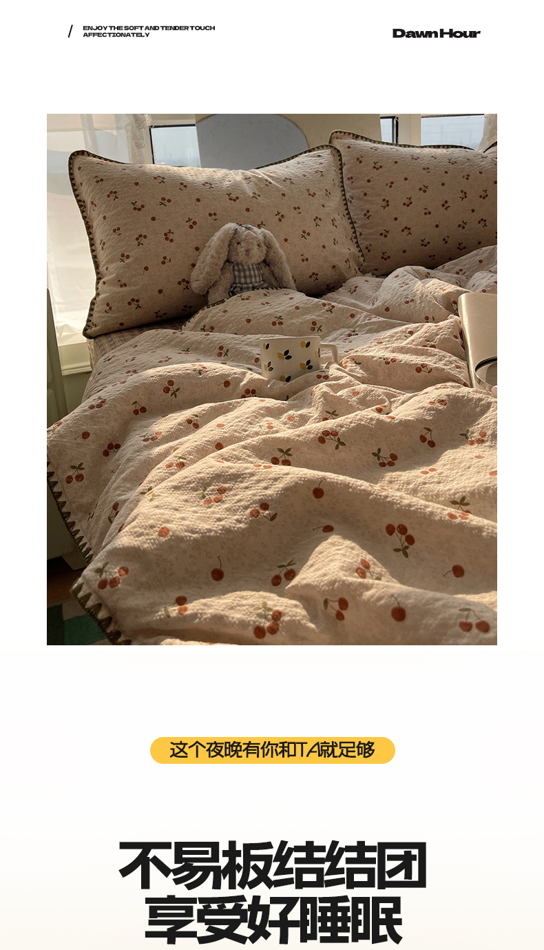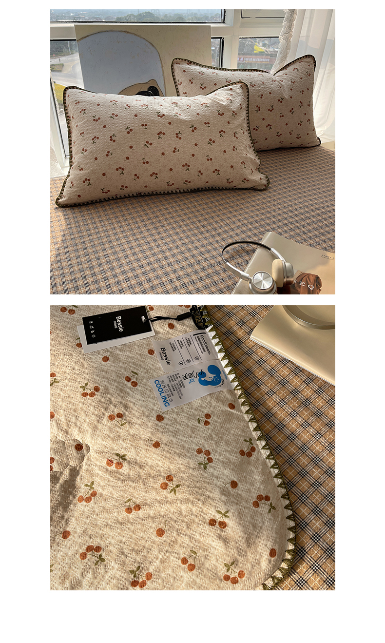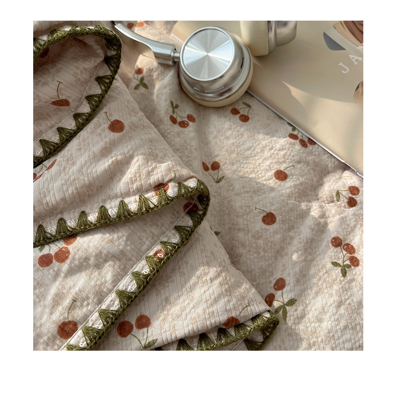商品名称:贝扬思家纺 2026新款泡芙纱贝壳边夏被套件-欧包系列(今天也只做被快乐包裹的小朋友) 欧包-酒渍樱桃