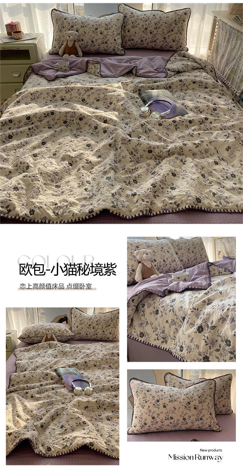 贝扬思家纺 2026新款泡芙纱贝壳边夏被套件-欧包系列(今天也只做被快乐包裹的小朋友) 欧包-柔紫碎花屿