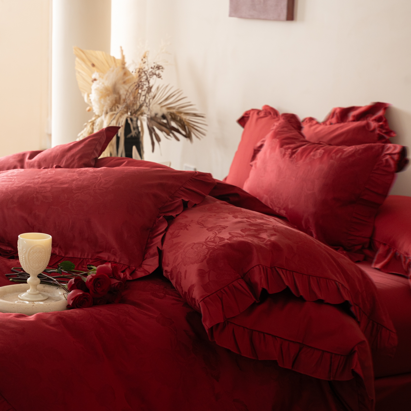 (总)优然居家纺 2025新款数码印花贴布绣婚庆四件套-醉嫣然,醉嫣然