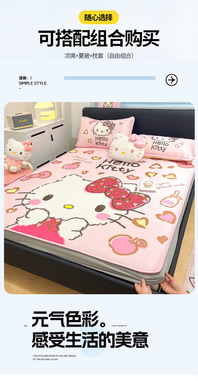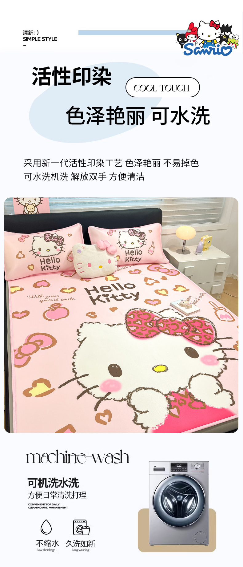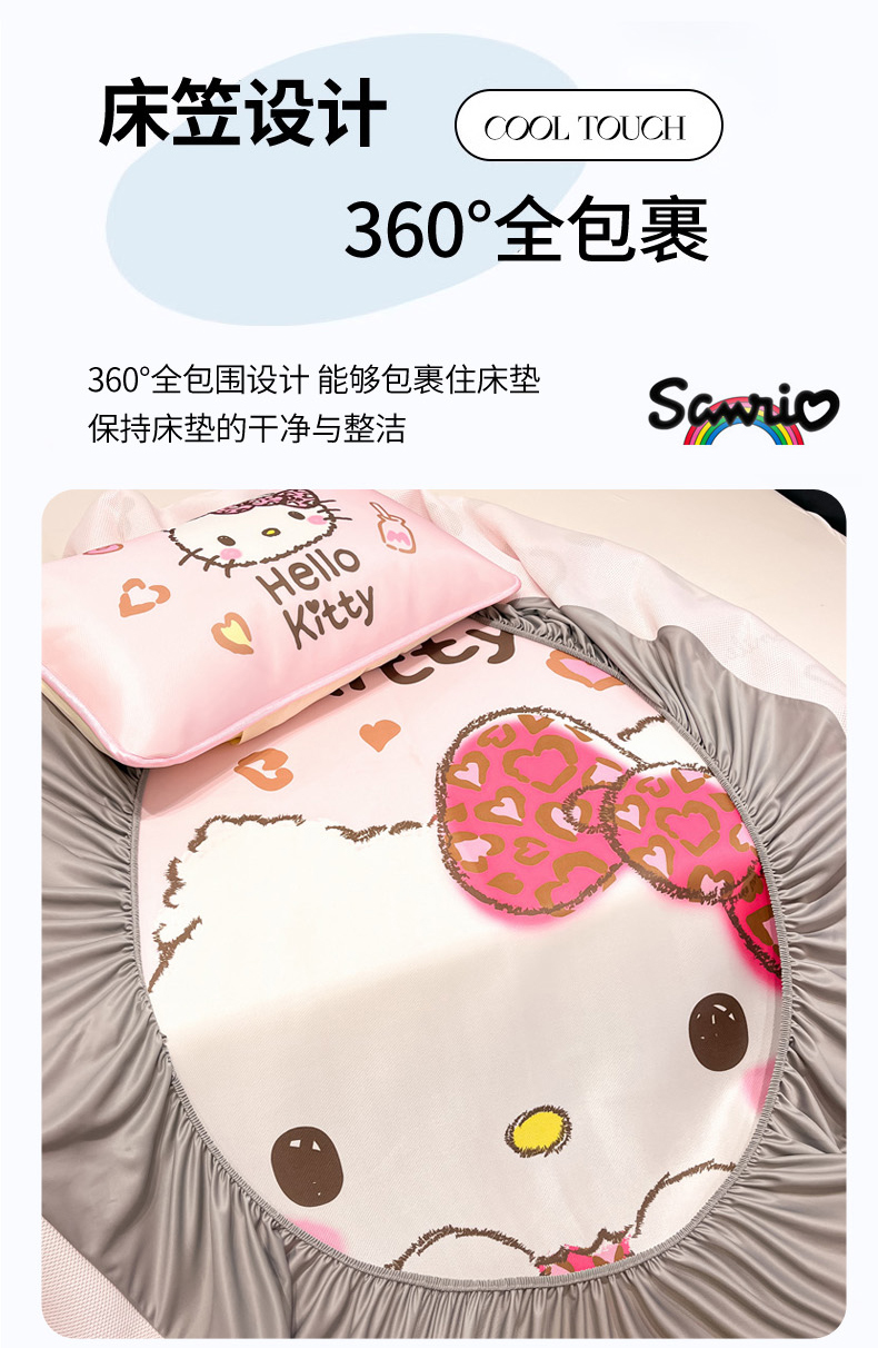 当前位置: 91家纺网 > 商品网购 > 床上用品 > 凉席 > 冰丝席 > 暮思家居 2026新款正版授权A类大版数码印花三丽鸥1200D冰丝凉席可组合仿锦氨夏被 床笠款-豹纹KT猫