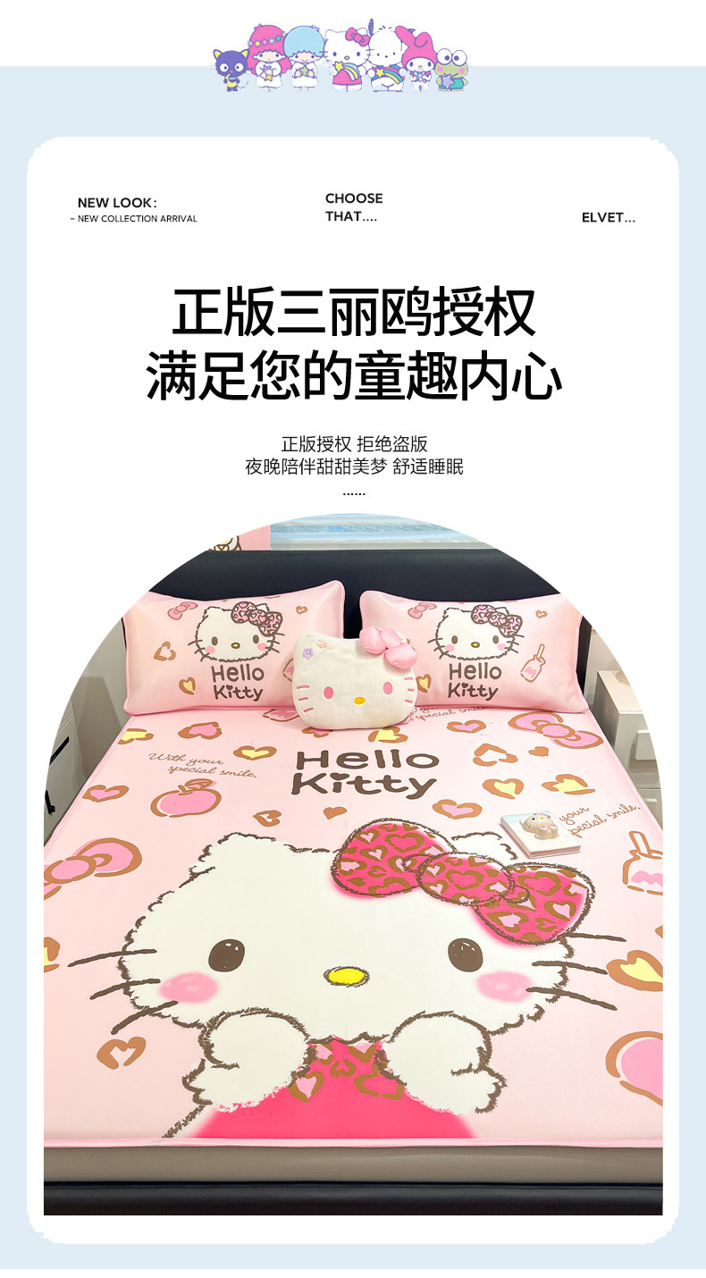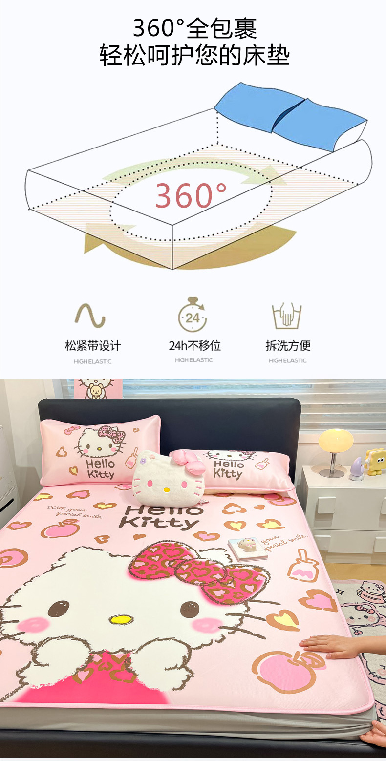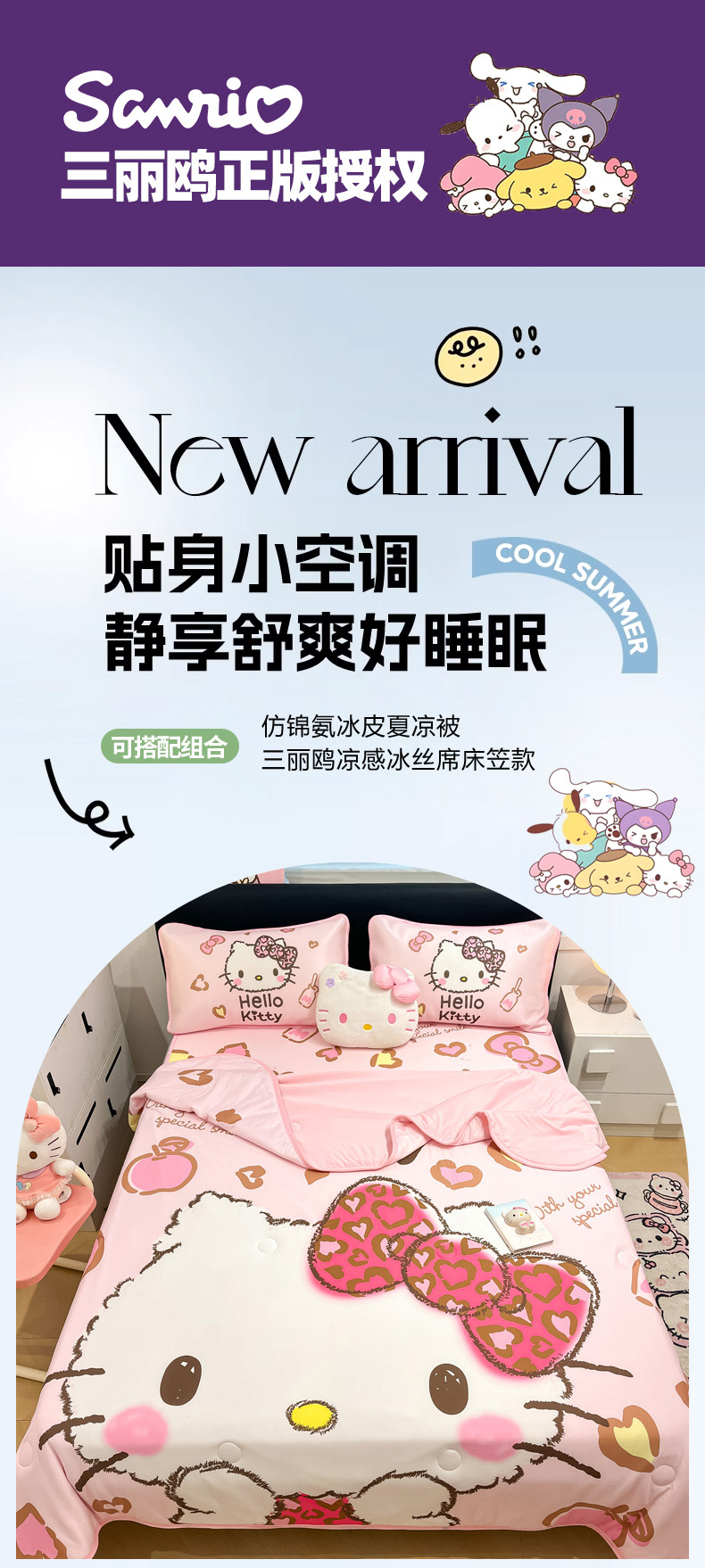 当前位置: 91家纺网 > 商品网购 > 床上用品 > 凉席 > 冰丝席 > 暮思家居 2026新款正版授权A类大版数码印花三丽鸥1200D冰丝凉席可组合仿锦氨夏被 床笠款-豹纹KT猫