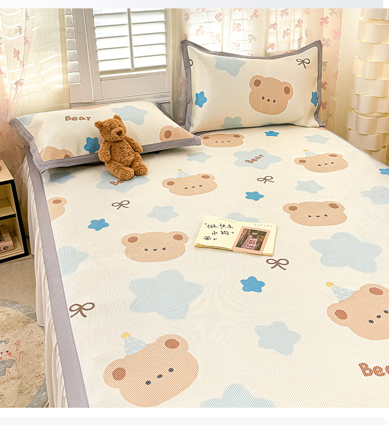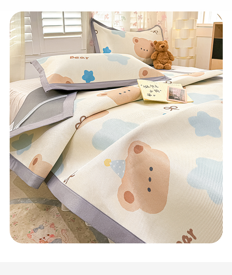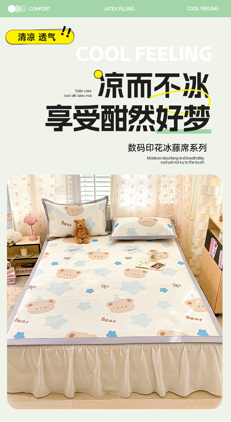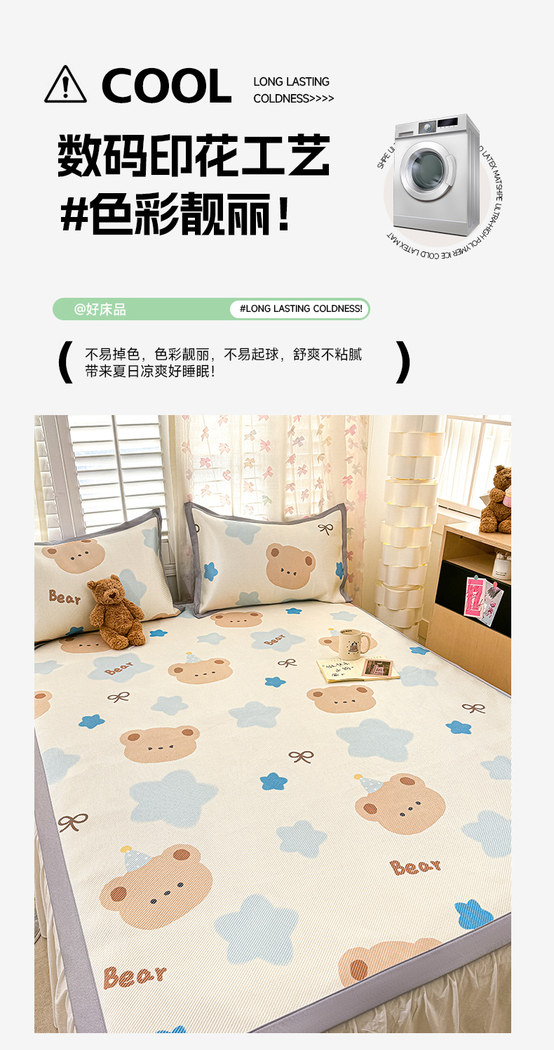 商品名称:川悦生活 2026新款时尚数码印花冰藤席 熊仔小歪