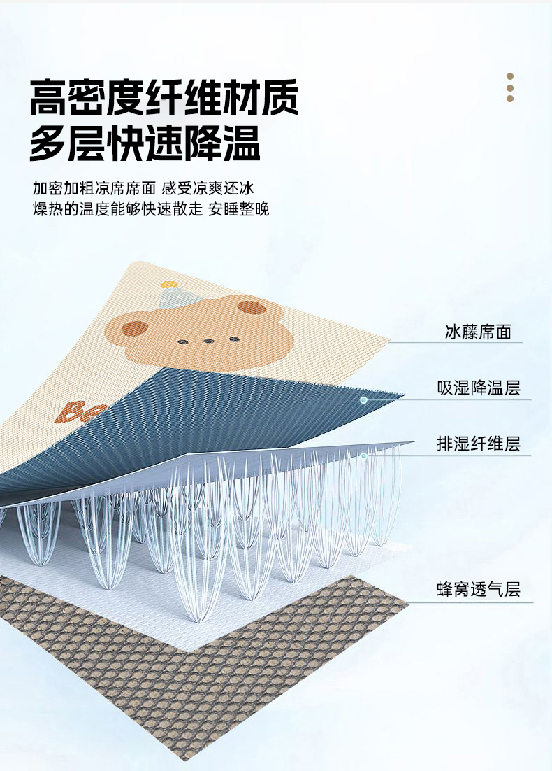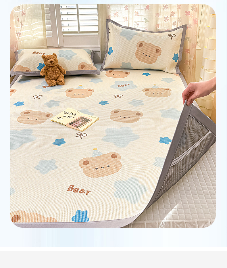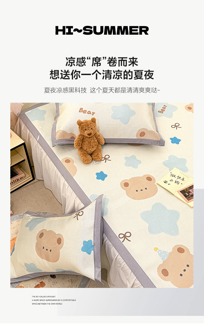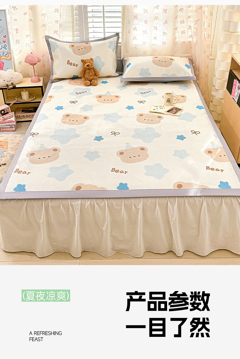 商品名称:川悦生活 2026新款时尚数码印花冰藤席 熊仔小歪