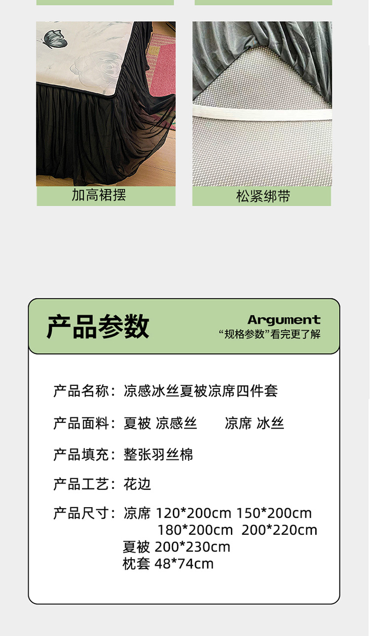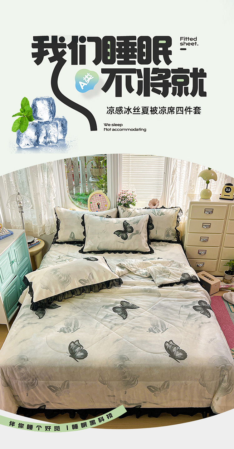 商品名称:(总)2026新款花边床裙款冰丝凉席套件配凉感丝同款夏被四件套可机洗软席三件套