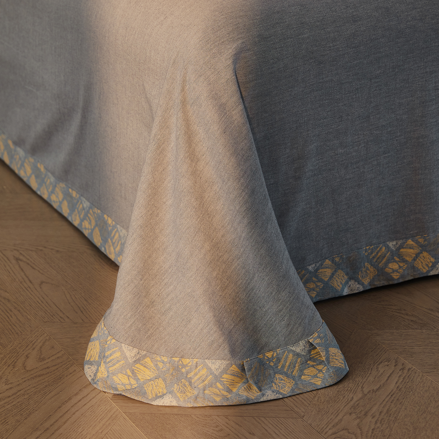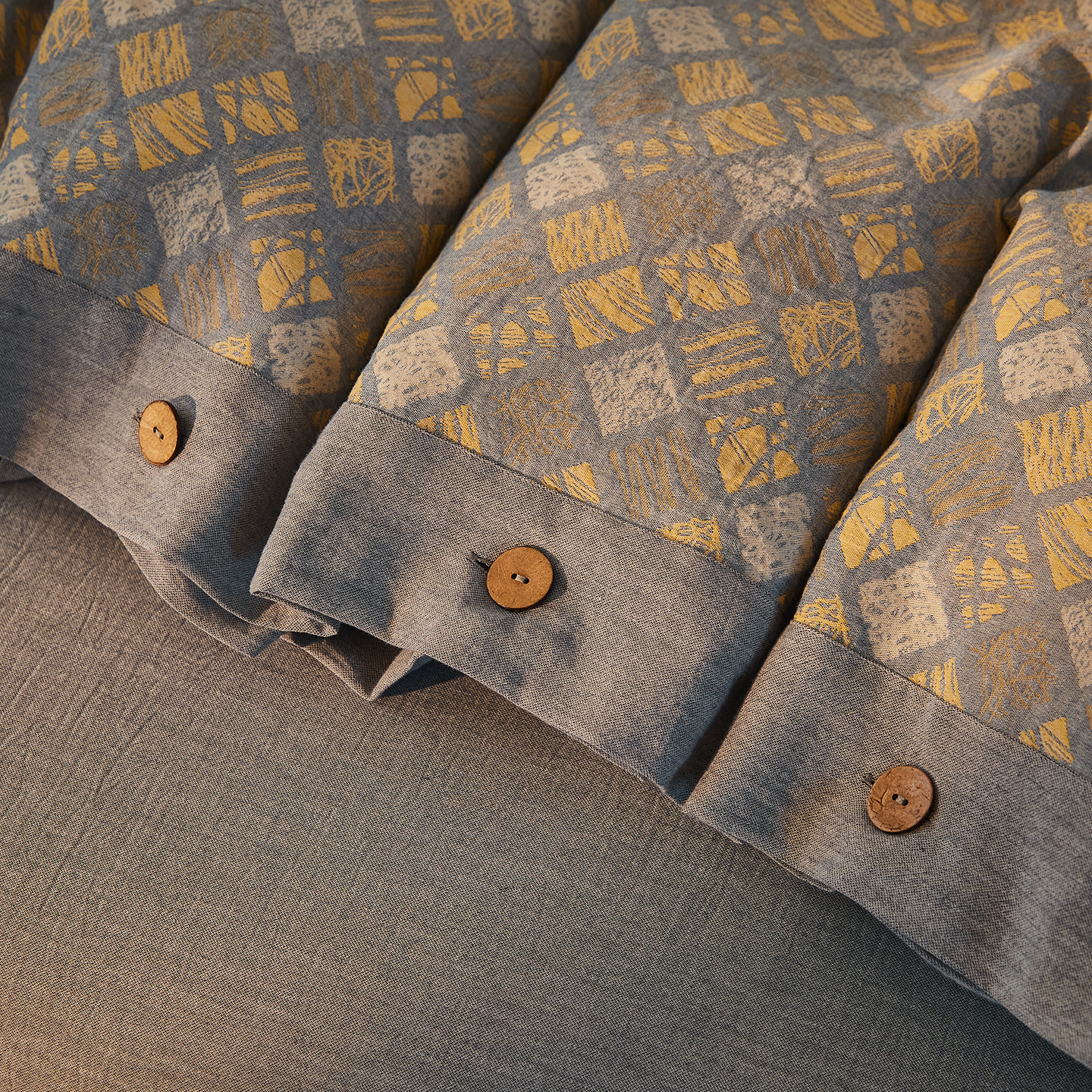 商品名称:(总)仰望棉麻双层纱供应链 2026新款全棉色织提花双层纱纽扣款四件套-木林漫