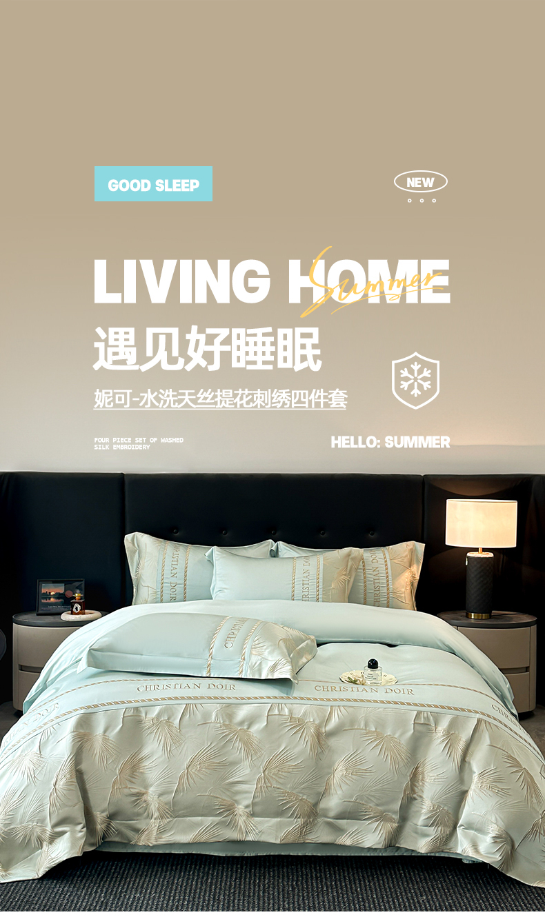 当前位置: 91家纺网 > 商品网购 > 床品套件 > 四件套 > 水洗真丝四件套 > 置顶家纺 2026新款水洗天丝提花刺绣四件套-妮可 妮可-繁星蓝