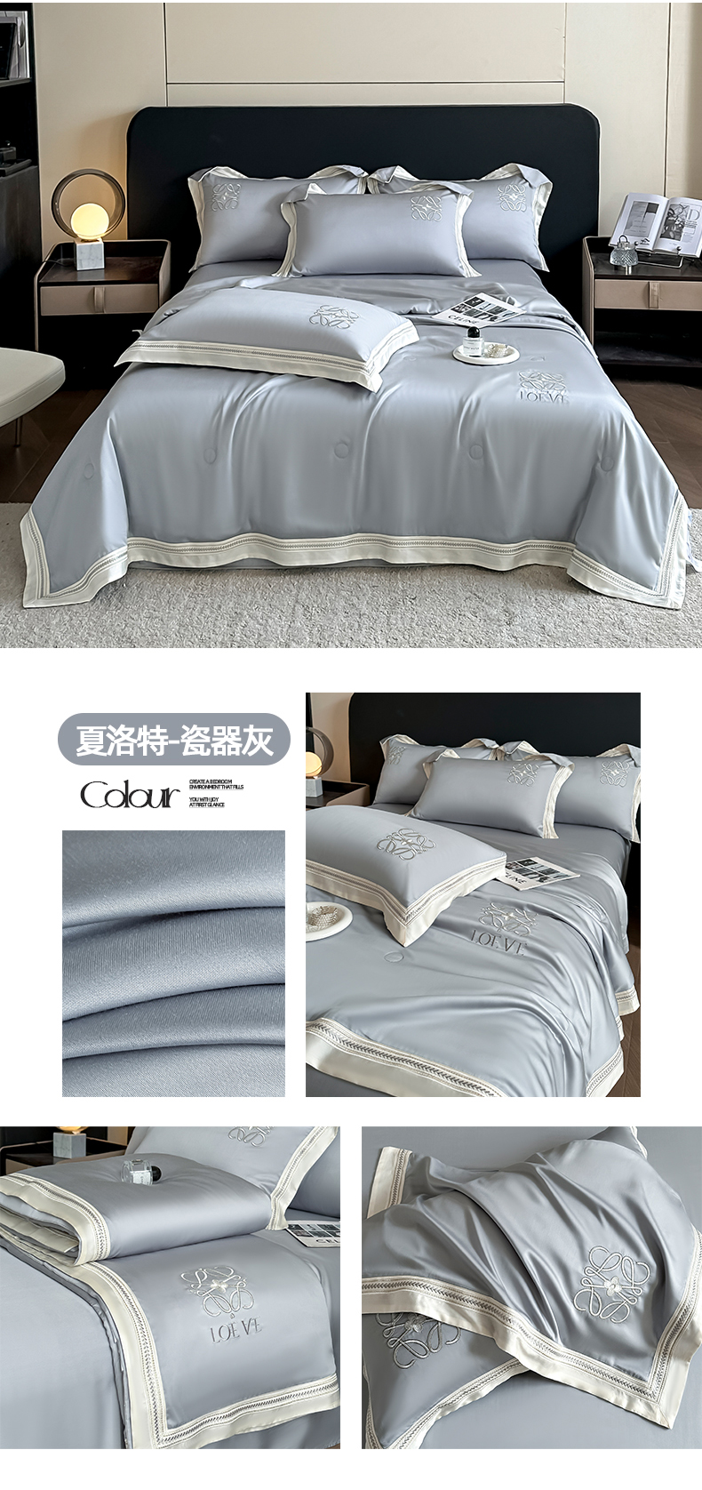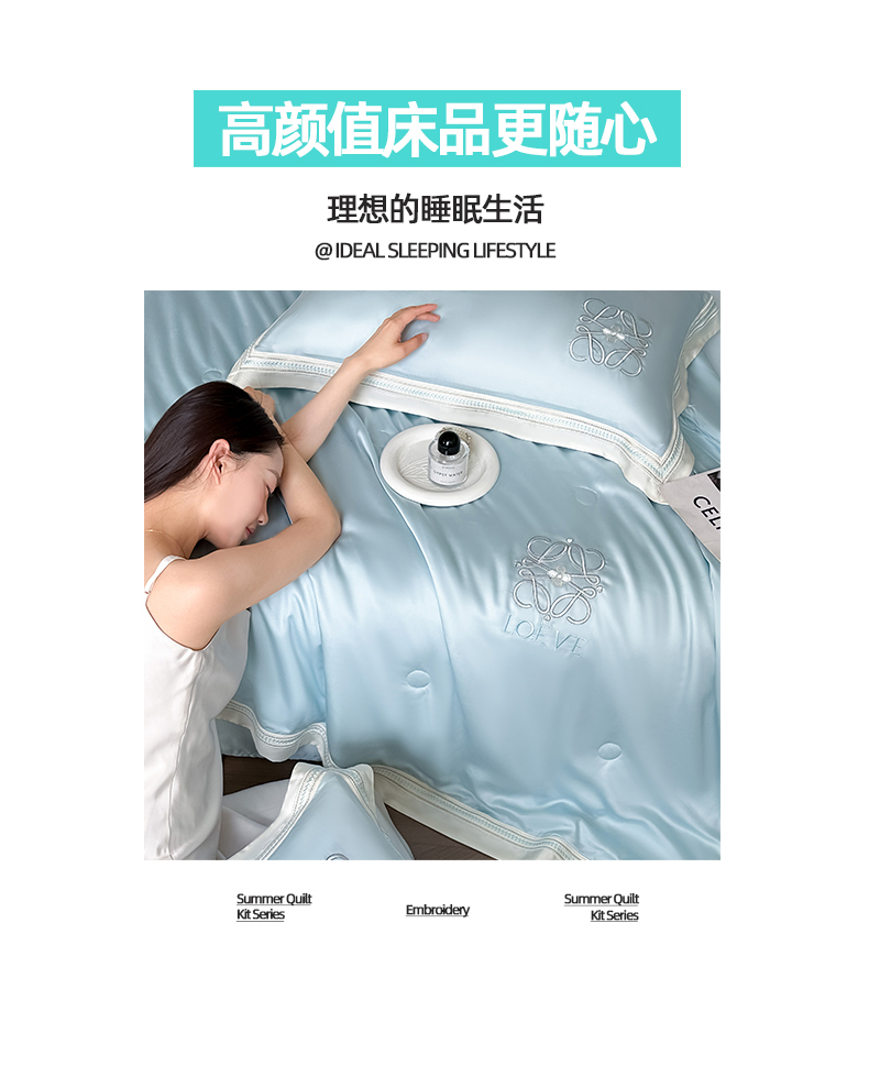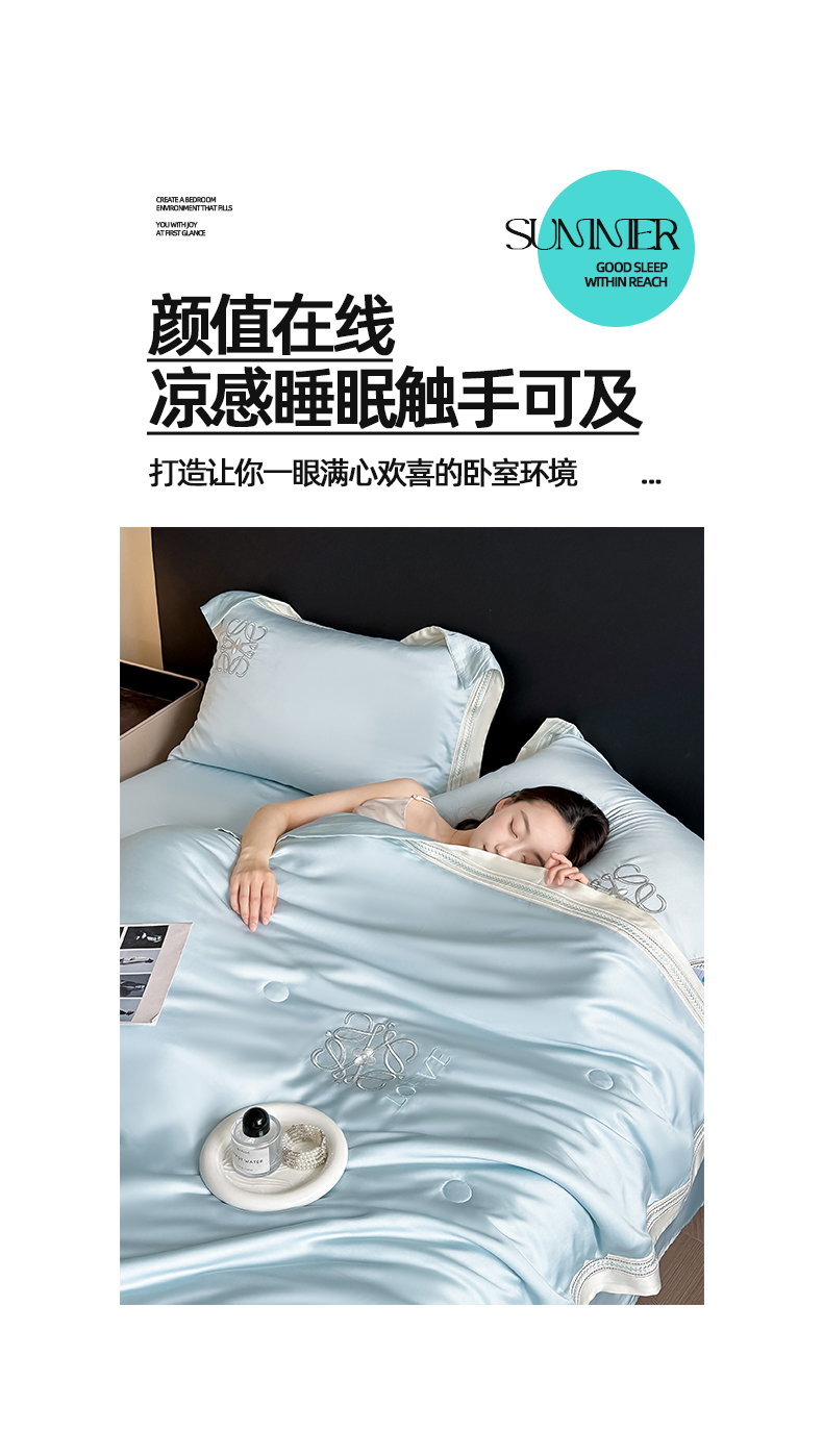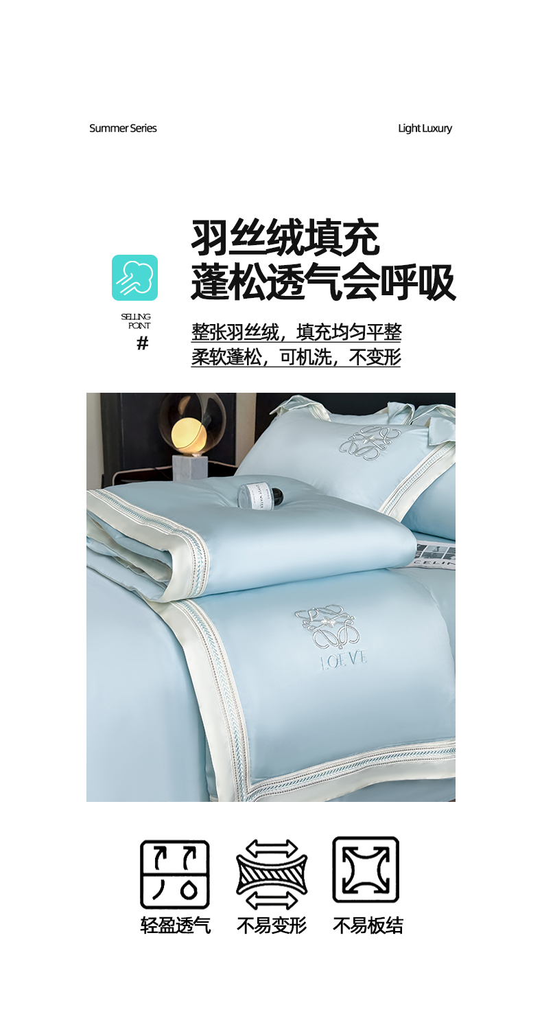 当前位置: 91家纺网 > 商品网购 > 床品套件 > 四件套 > 水洗真丝四件套 > 置顶家纺 2026新款水洗天丝夏被刺绣四件套-夏洛特 夏洛特-浅蓝