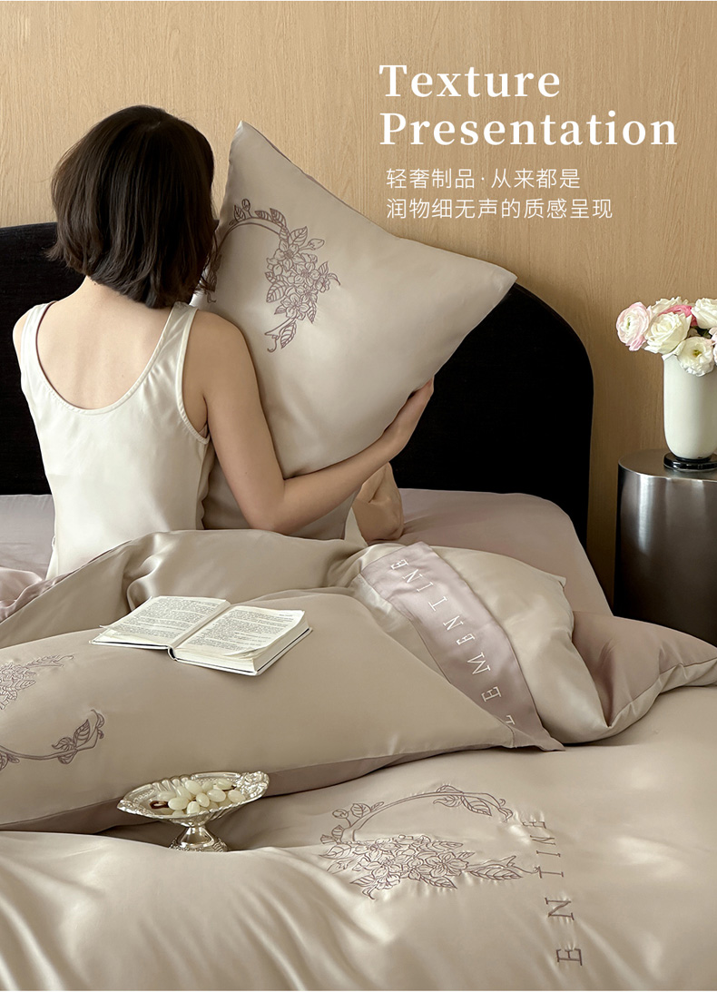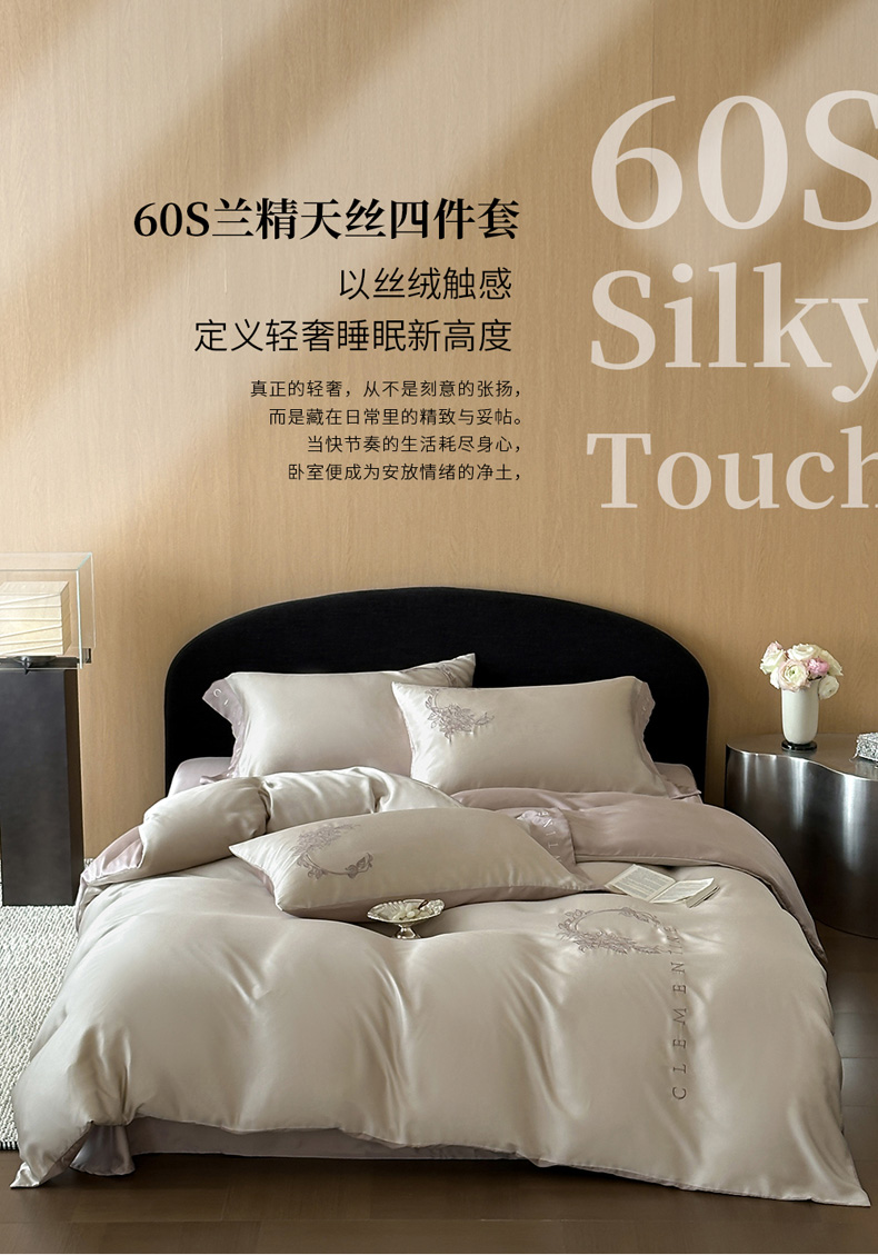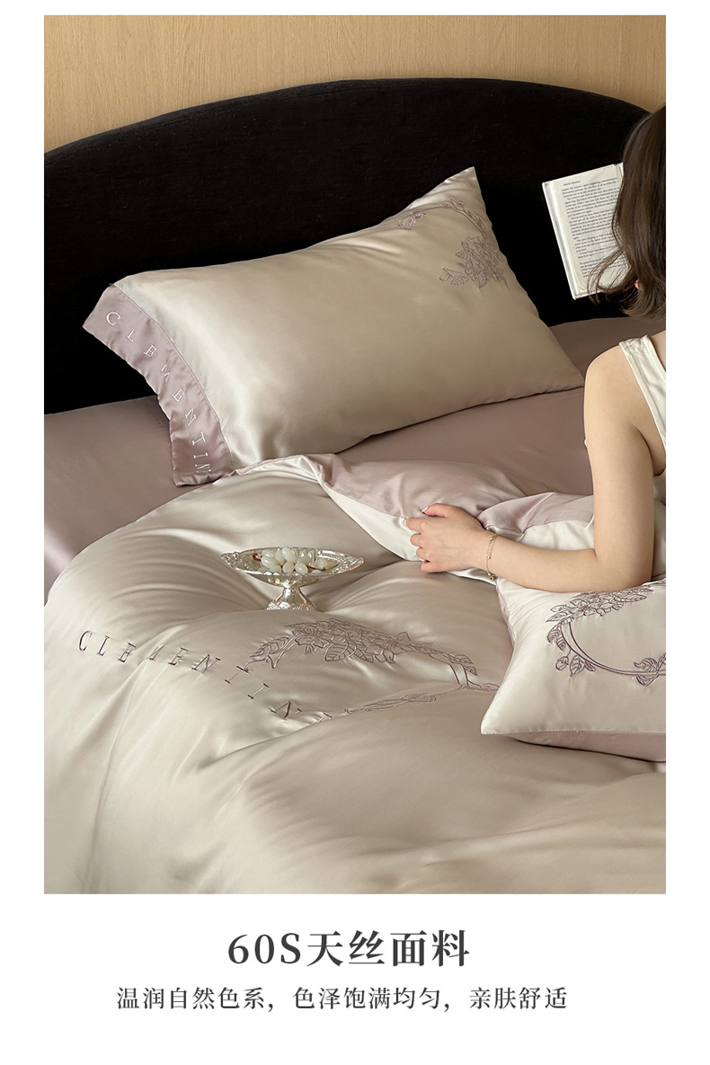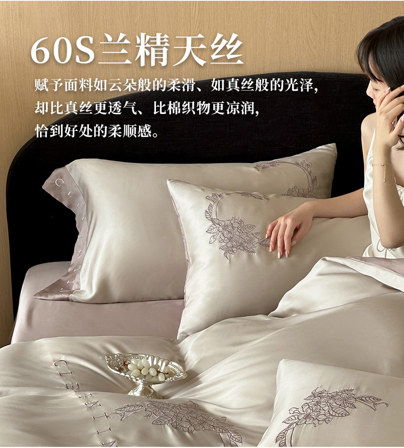 (总)爱缦 新款60支莱赛尔四件套-至真系列,蓝米驼,米白粉,浅紫,玉粉
