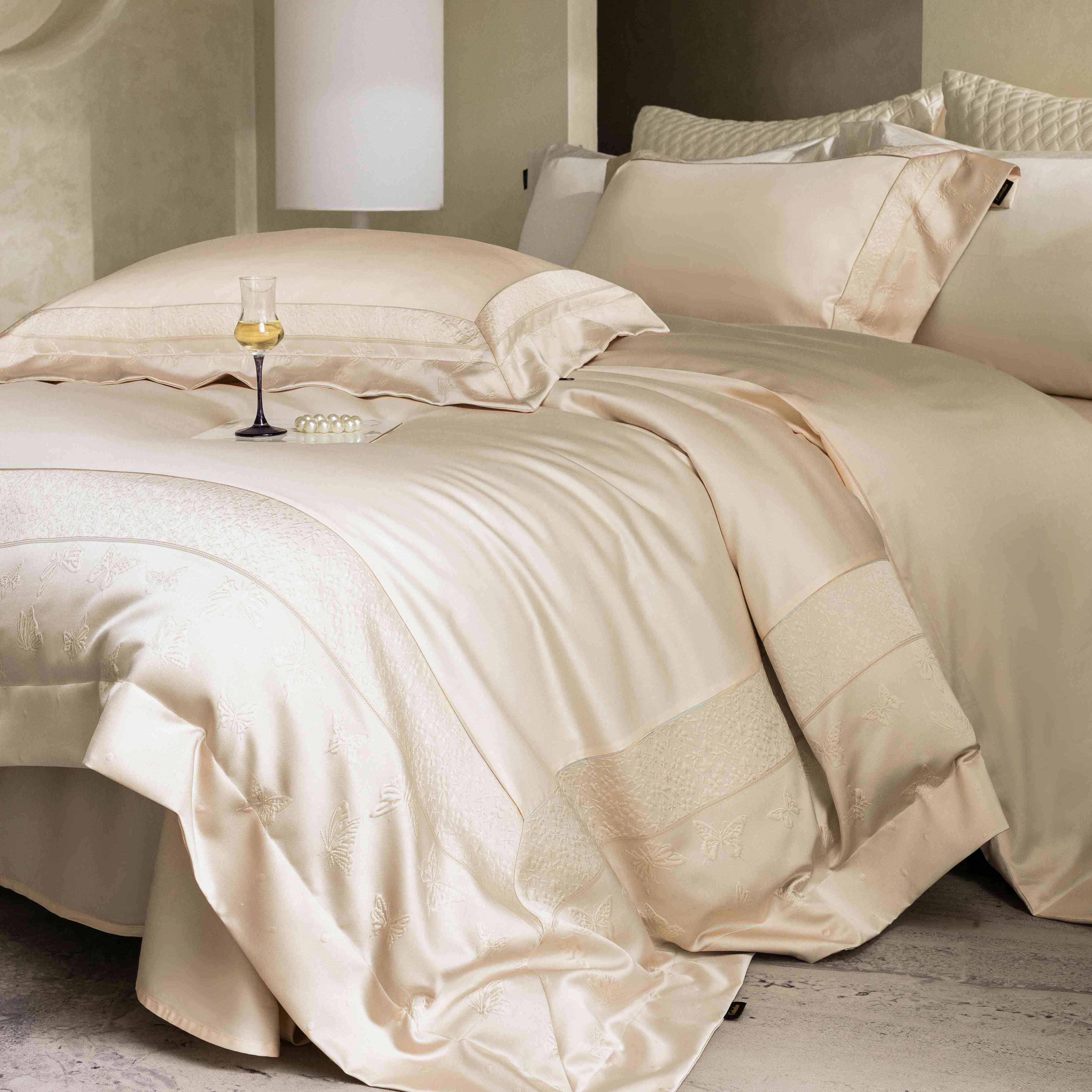 (总)卡巴伦家纺 2026春夏新款全棉纯棉贡缎高精密提花边条款式四件套,琉璃福蝶-白,琉璃福蝶-粉,琉璃福蝶-灰,琉璃福蝶-香槟,琉璃福蝶-紫,鎏金巴黎-纯净白,鎏金巴黎-高级灰,鎏金巴黎-琉璃紫,鎏金巴黎-香槟,鎏金巴黎-樱花粉,南法庄园-高级灰,南法庄园-漫漫紫,南法庄园-香槟,维密-梦幻紫,维密-倾城粉,维密-香槟