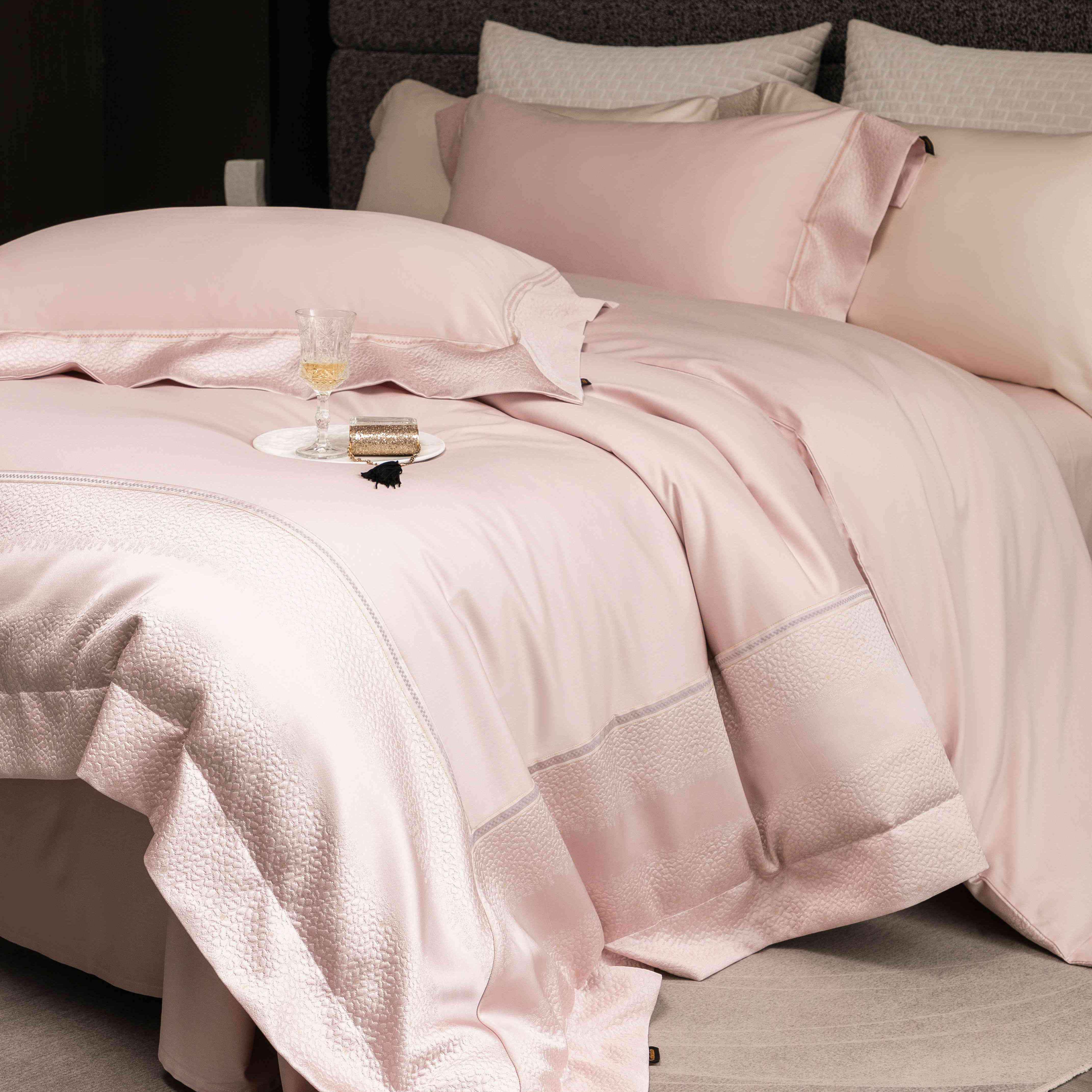 卡巴伦家纺 2026春夏新款全棉纯棉贡缎高精密提花边条款式四件套 鎏金巴黎-香槟