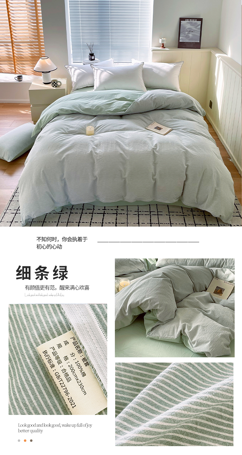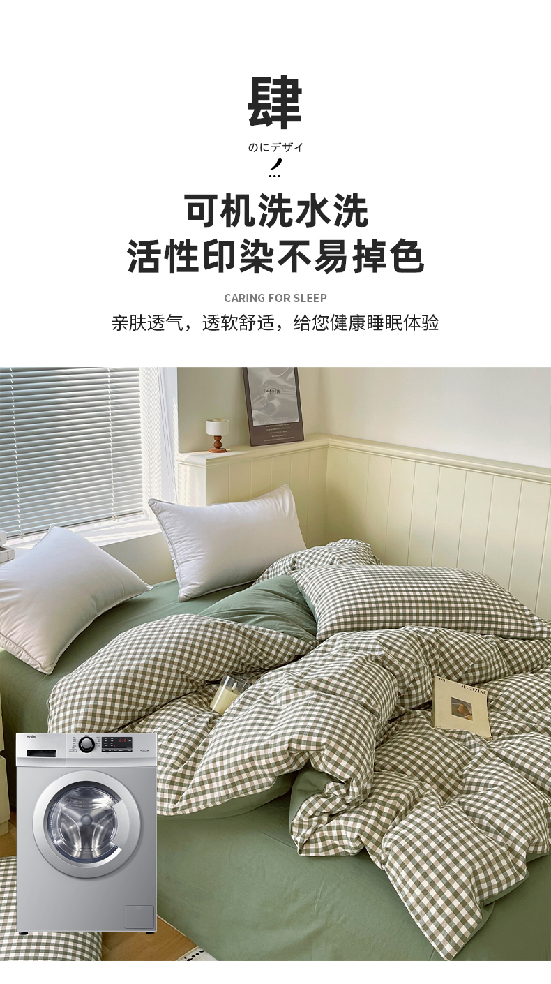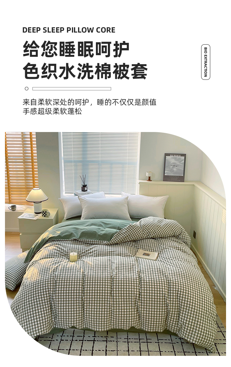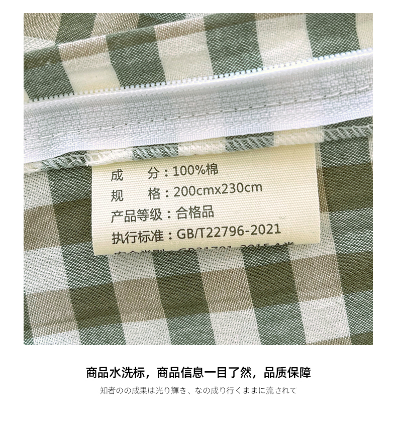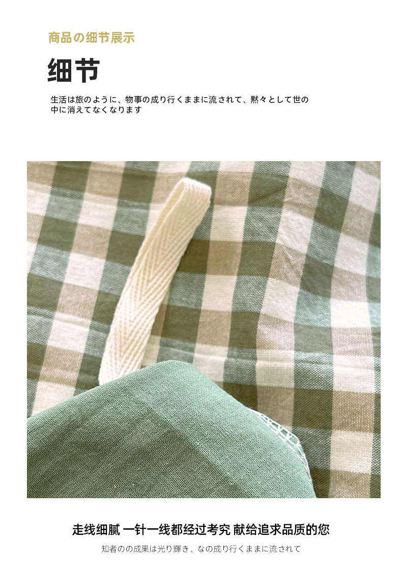 商品名称:春皖家纺 2026春夏新款全棉纯棉水洗棉单被套被套单件单品被套 素雅-绿格