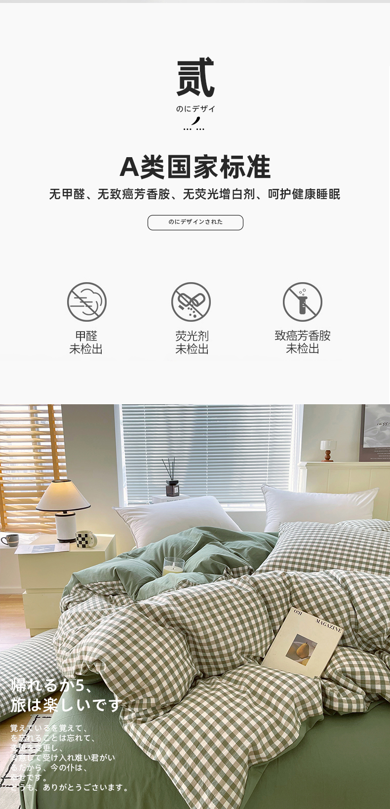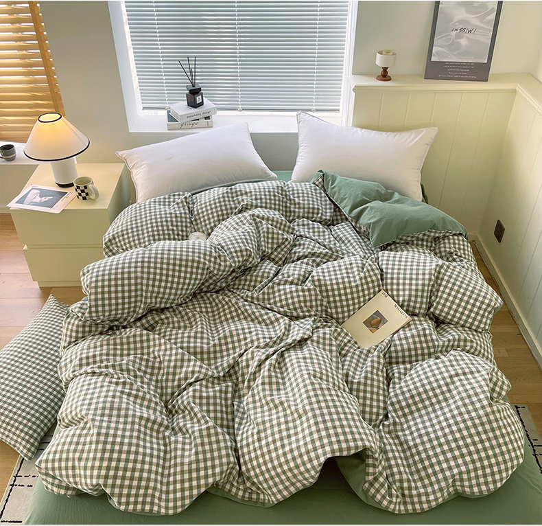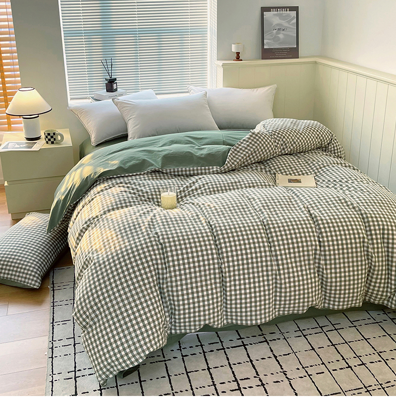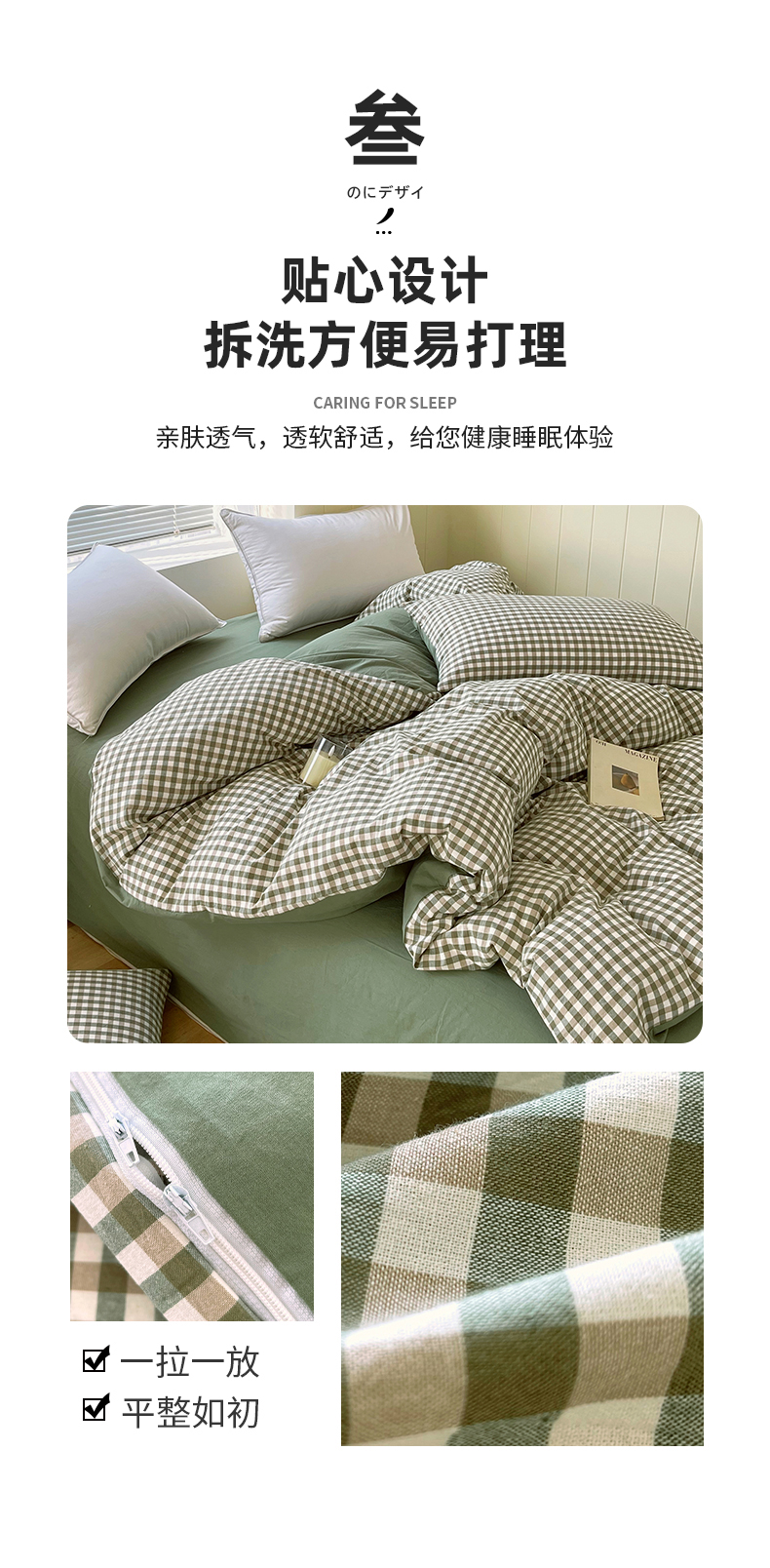 春皖家纺 2026春夏新款全棉纯棉水洗棉单被套被套单件单品被套 素雅-绿格