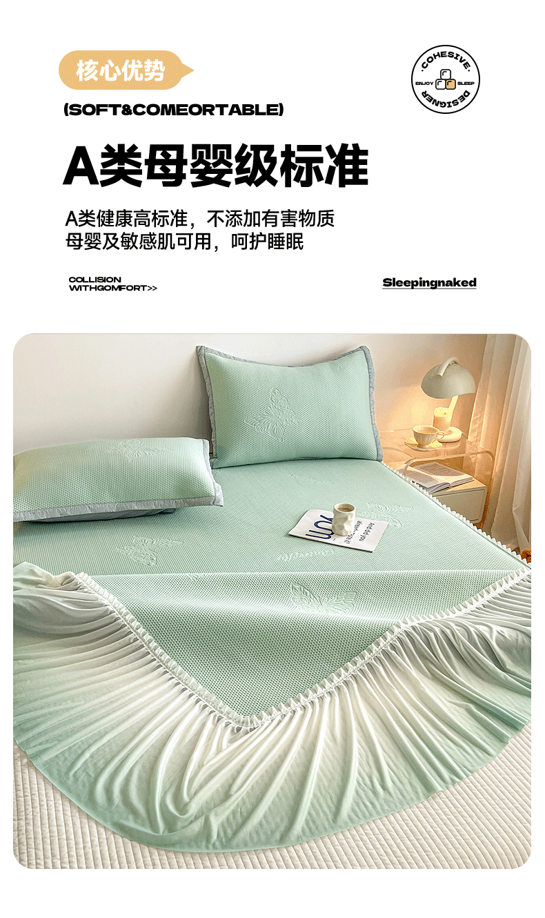 商品名称:安哆啦家纺 2026新款公主仙女风480克PE凉感凉豆豆床裙凉席三件套-豆豆床裙 豆豆床裙-清水绿