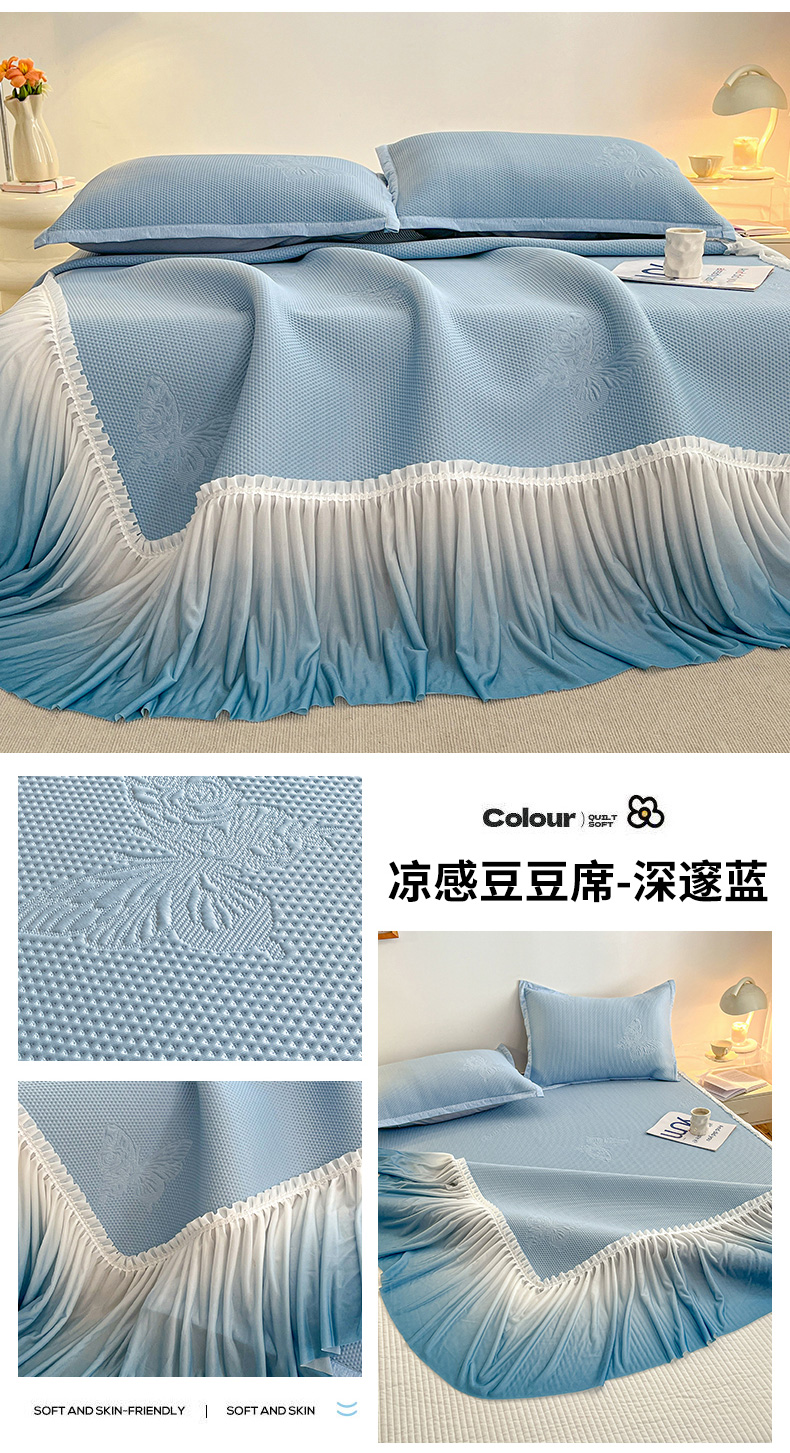 安哆啦家纺 2026新款公主仙女风480克PE凉感凉豆豆床裙凉席三件套-豆豆床裙 豆豆床裙-清水绿
