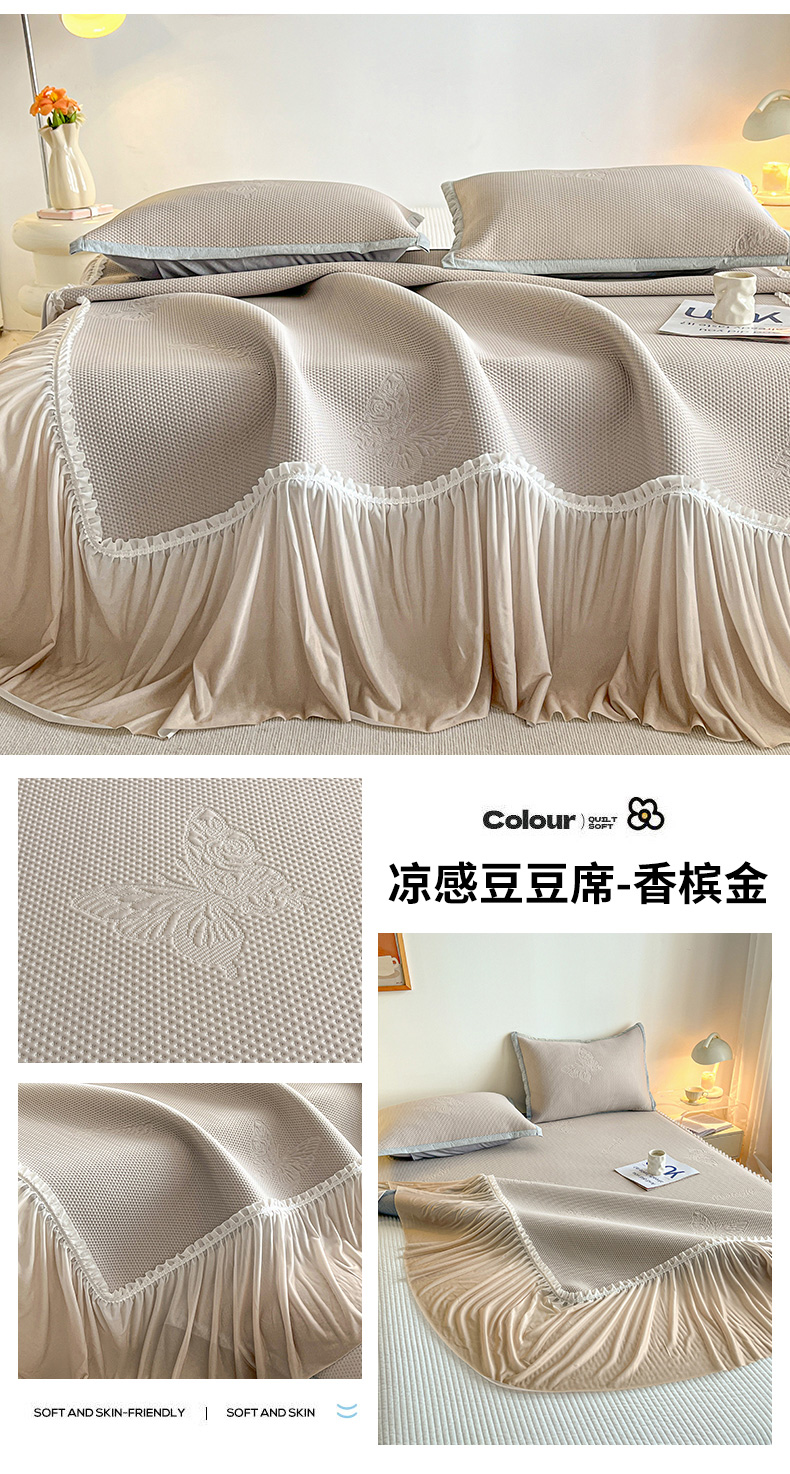 (总)安哆啦家纺 2026新款公主仙女风480克PE凉感凉豆豆床裙凉席三件套-豆豆床裙,豆豆床裙-果绿,豆豆床裙-清水绿,豆豆床裙-绅士灰,豆豆床裙-深邃蓝,豆豆床裙-仙女粉,豆豆床裙-香槟金