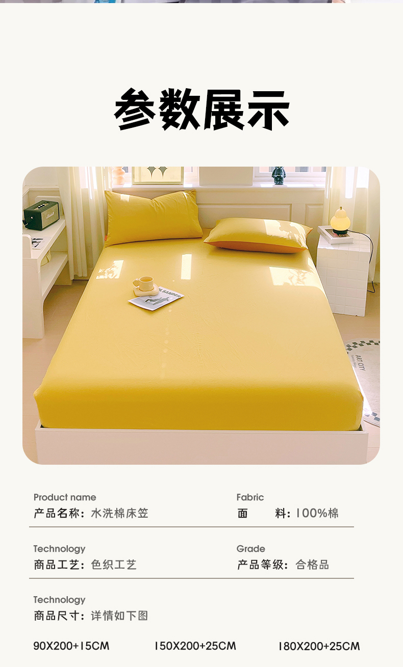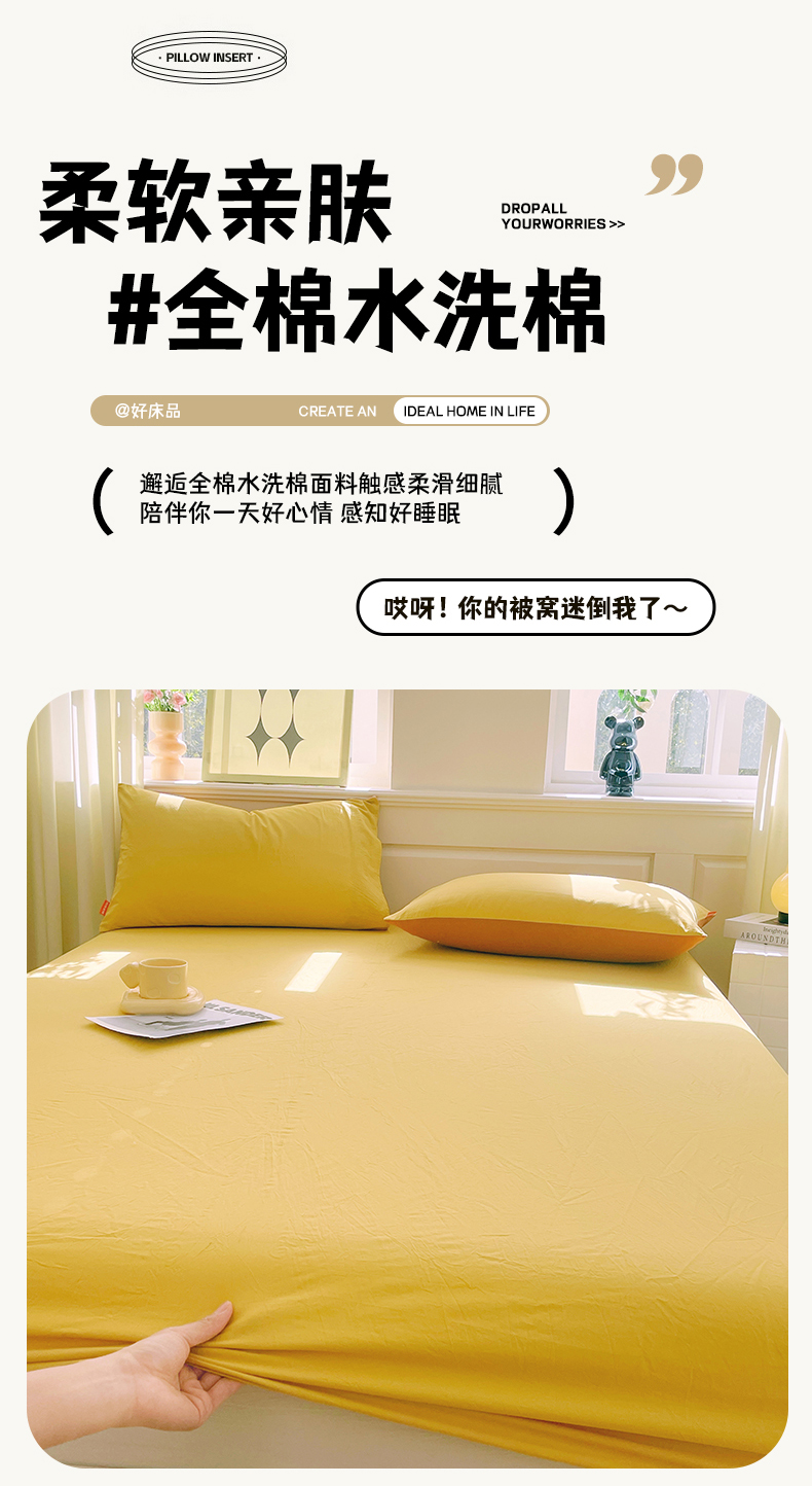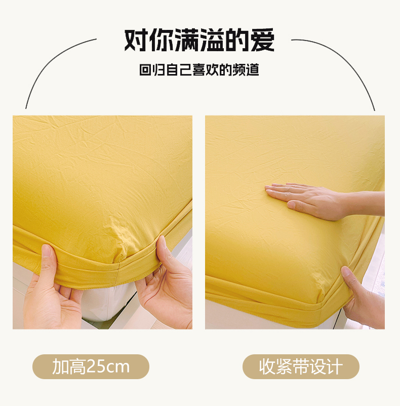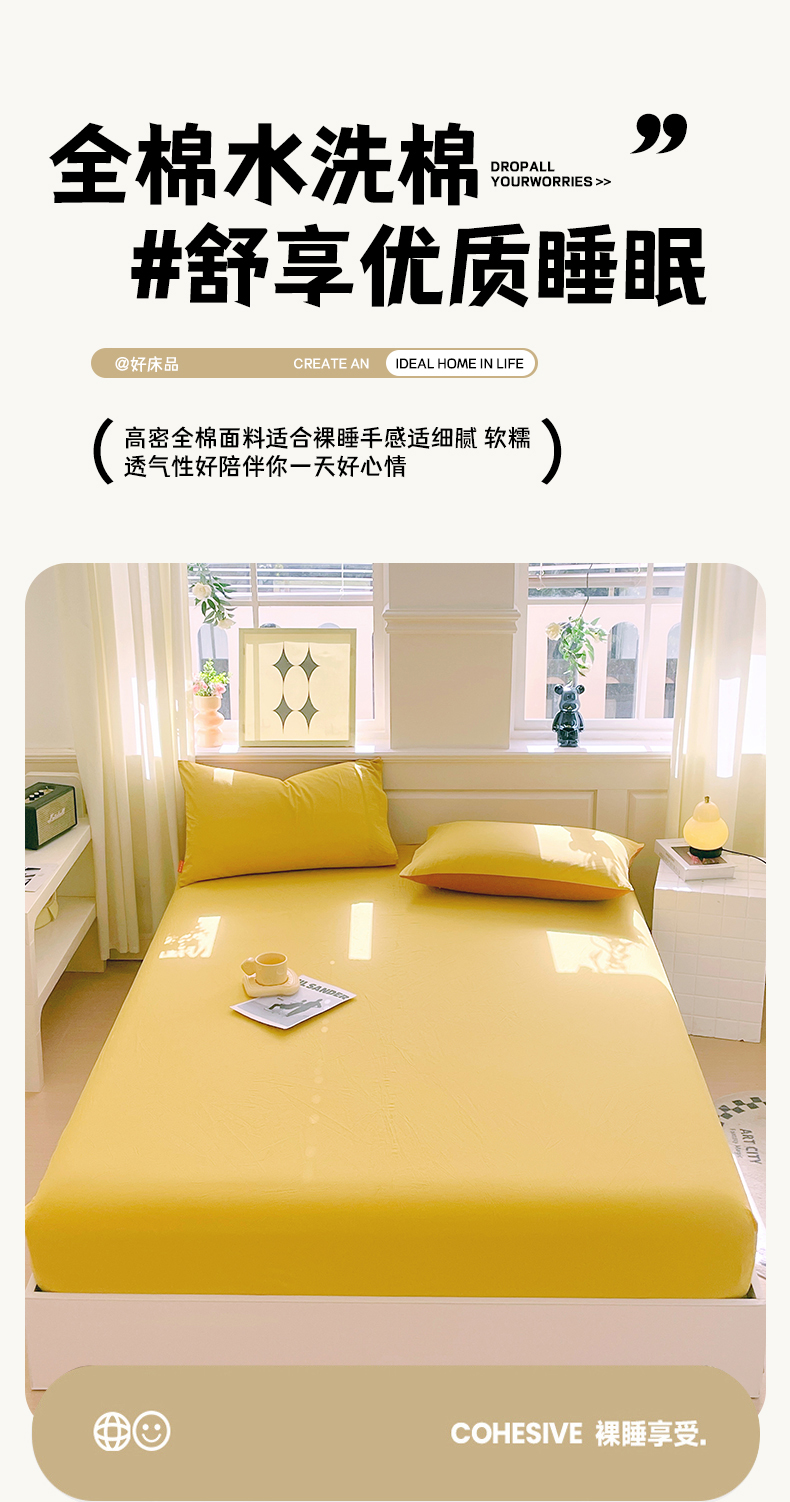 商品名称:春皖家纺 2026春夏新款全棉纯棉水洗棉单品系列床笠单件床笠单品-B版单床笠 素雅深黄