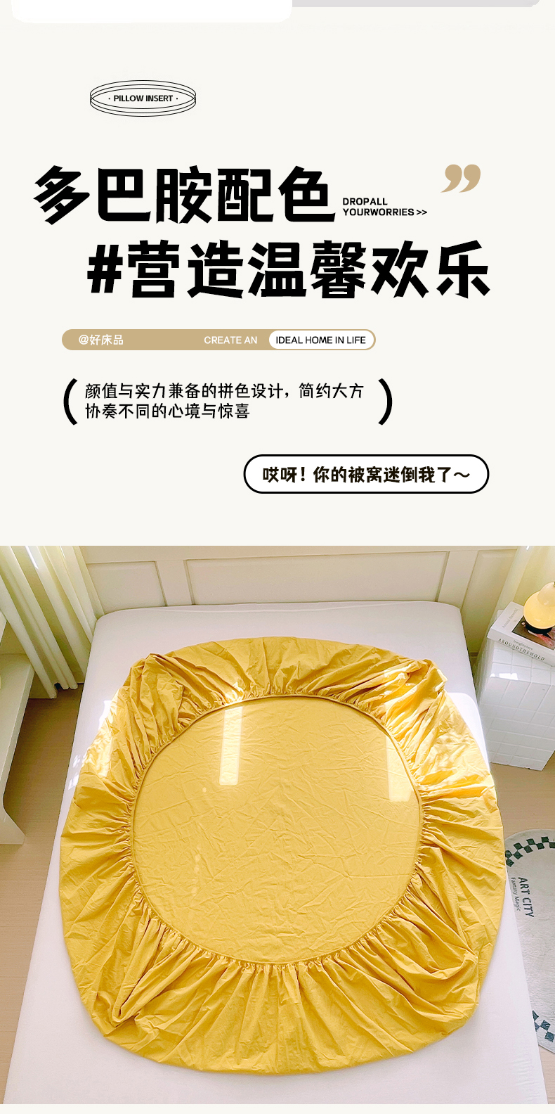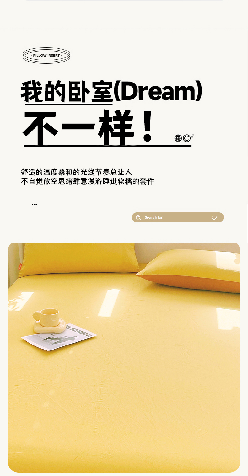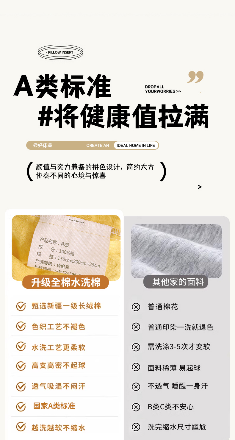 商品名称:春皖家纺 2026春夏新款全棉纯棉水洗棉单品系列床笠单件床笠单品-B版单床笠 素雅深黄