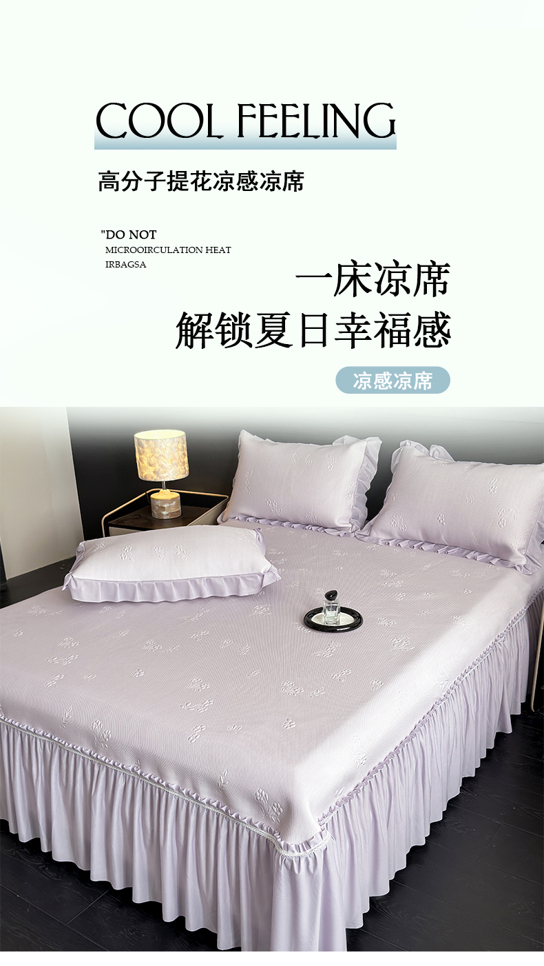 宅家居 2026春夏新款PE高分子复合软凉席豆豆席大床裙三件套-小花系列 小花-紫色