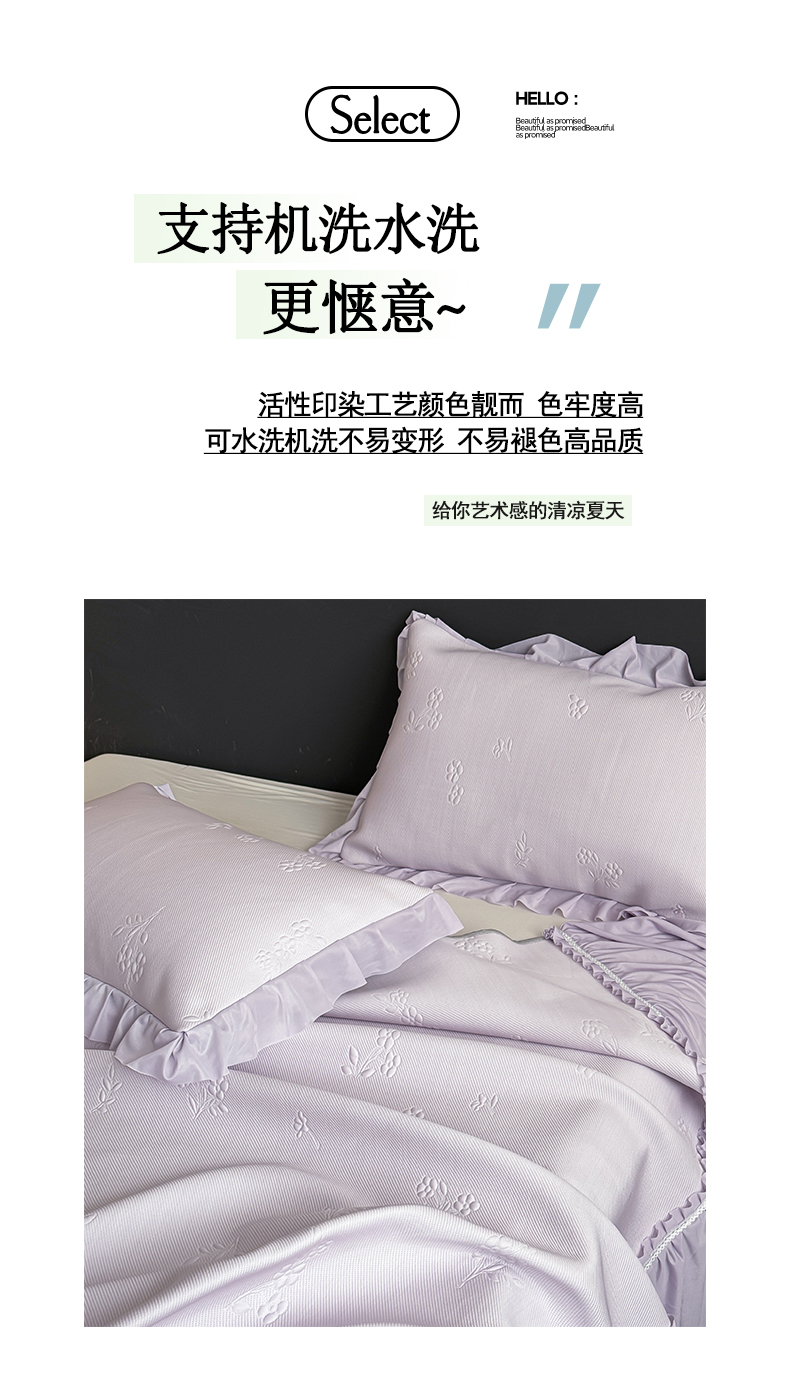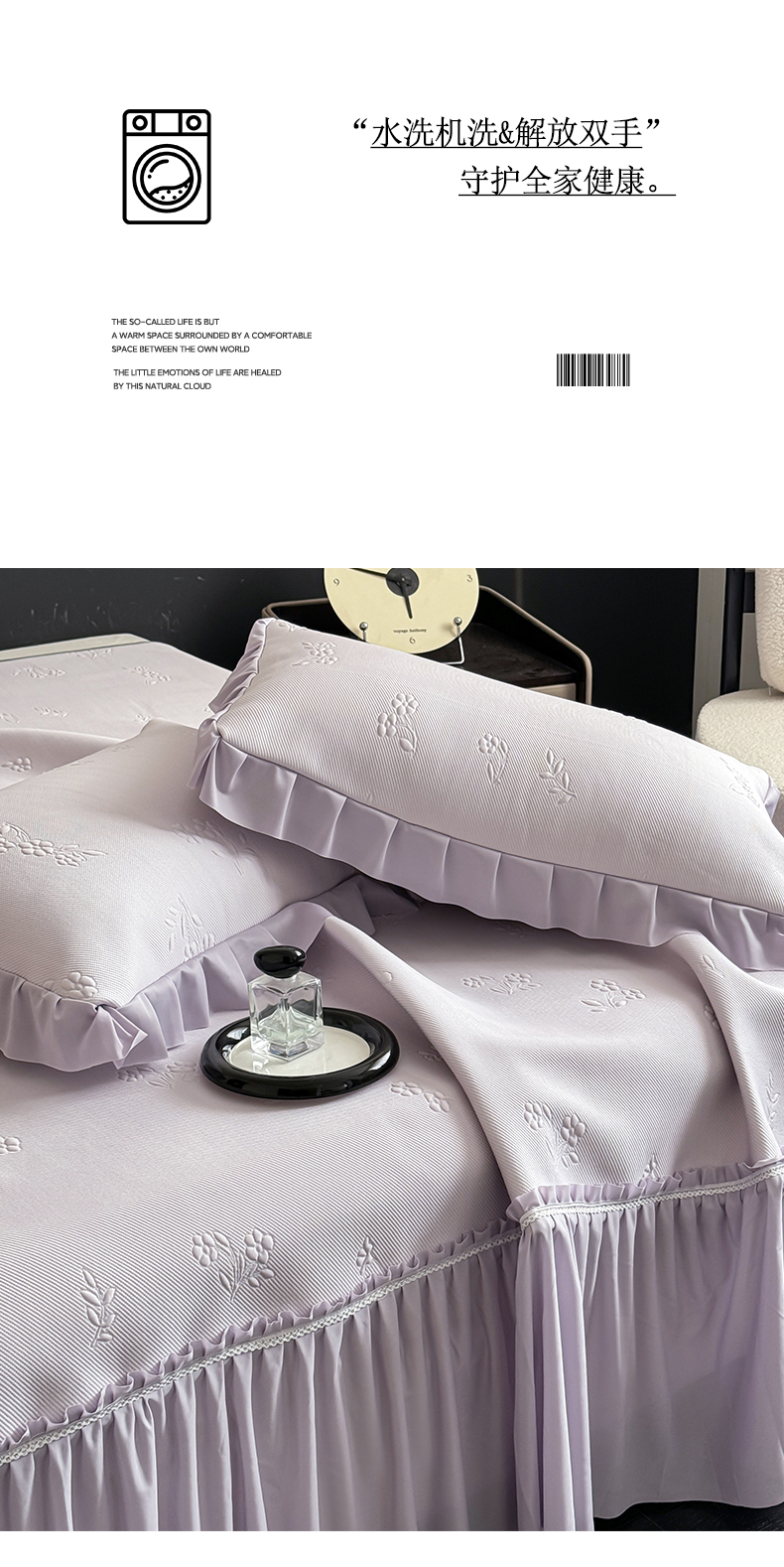 商品名称:宅家居 2026春夏新款PE高分子复合软凉席豆豆席大床裙三件套-小花系列 小花-紫色