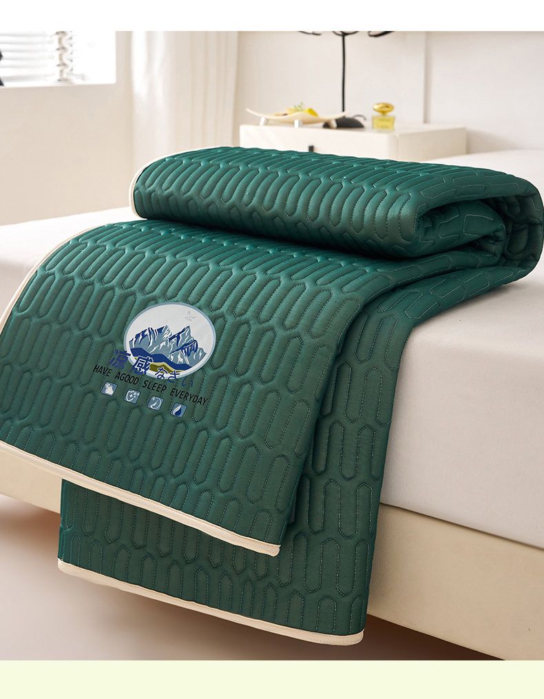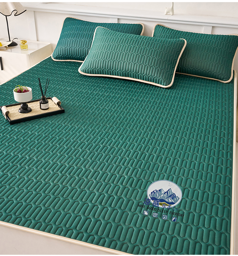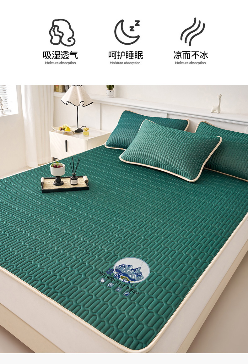 奇丝雅 2026夏季A类纯色乳胶凉席冰丝席家用双人冰丝凉席可机洗夏天空调席三件套-场景二 富士山-墨绿