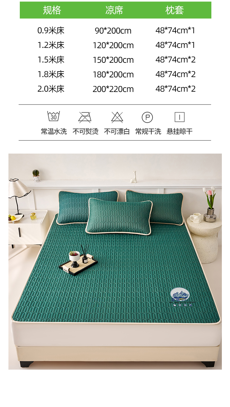 (总)奇丝雅 2026夏季A类纯色乳胶凉席冰丝席家用双人冰丝凉席可机洗夏天空调席三件套-场景二,组合图仅供展示不可下单,富士山-典雅蓝,富士山-果绿,富士山-墨绿,富士山-银灰,富士山-玉色