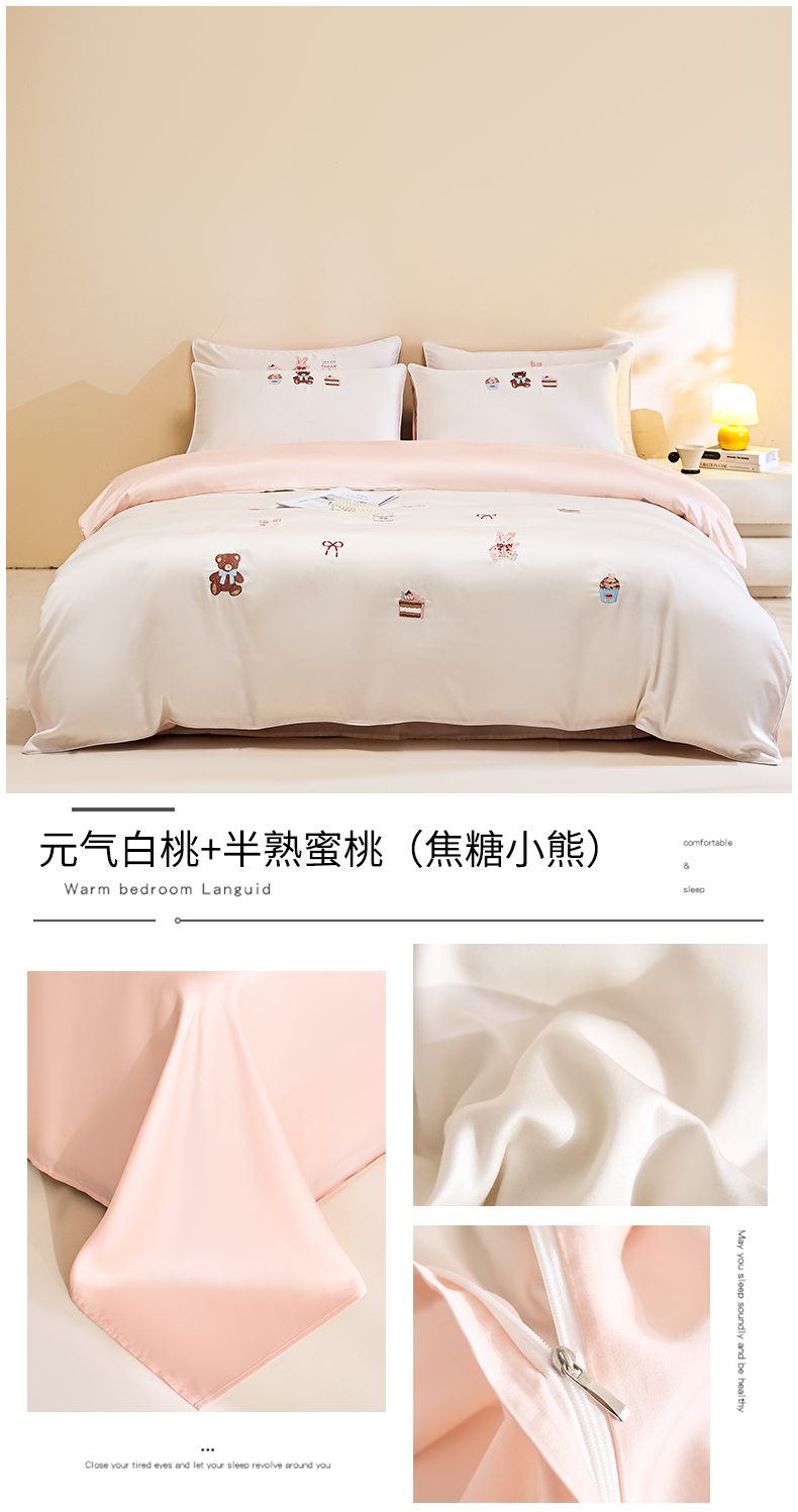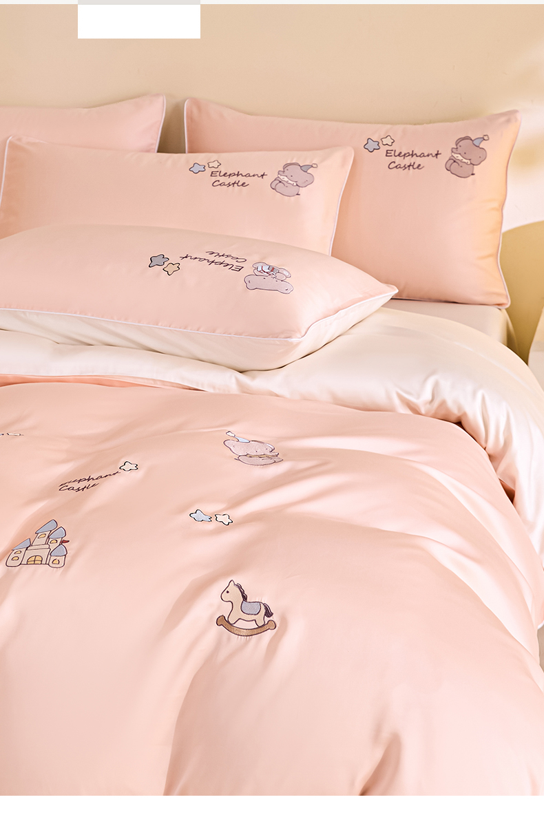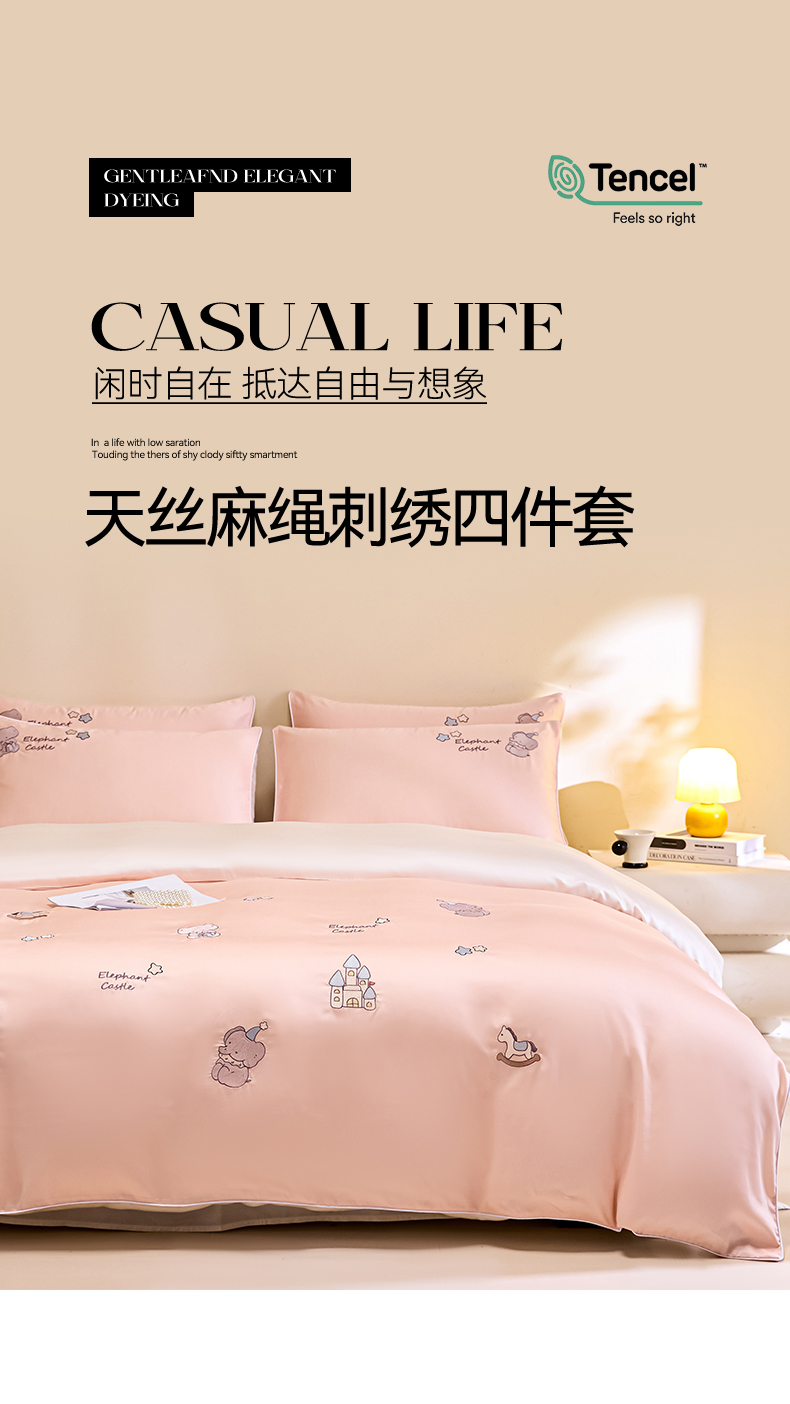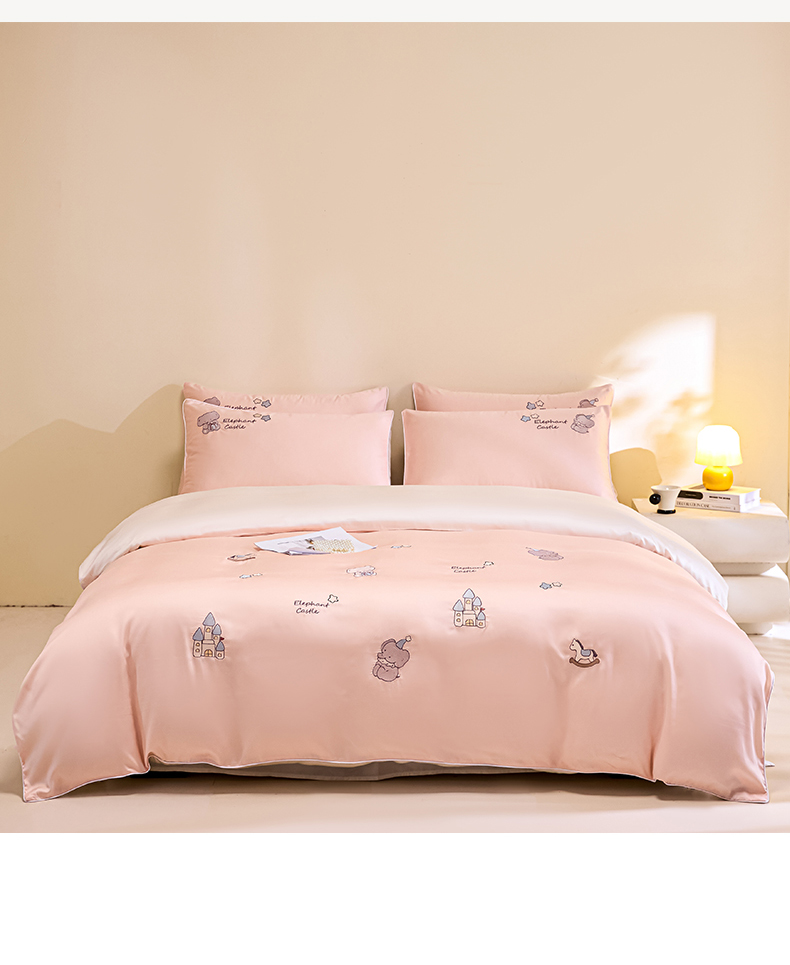 当前位置: 91家纺网 > 商品网购 > 床品套件 > 四件套 > 莱赛尔四件套 > DC 2026新款天丝刺绣麻绳平绣系列四件套 麻绳平绣-半熟蜜桃+元气白桃(小象城堡)