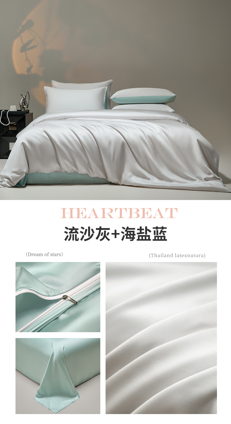(总)DC 2026新款天丝纯色双拼四件套--多娜系列,梵高蓝,淡海蓝+冰川灰,古董白,经典灰,流沙灰+海盐蓝,浅茶+冰川灰,亚丁绿+冰川灰,椰子灰,婴儿蓝,元气白桃+半熟蜜桃,子粉+椰子灰