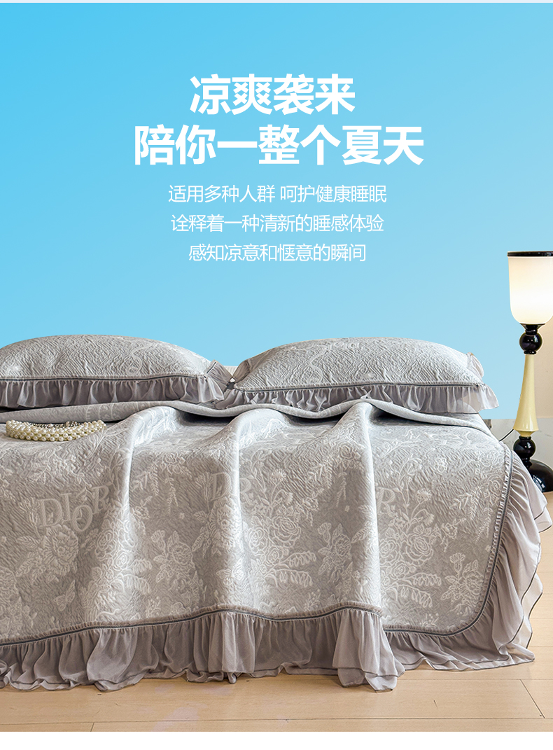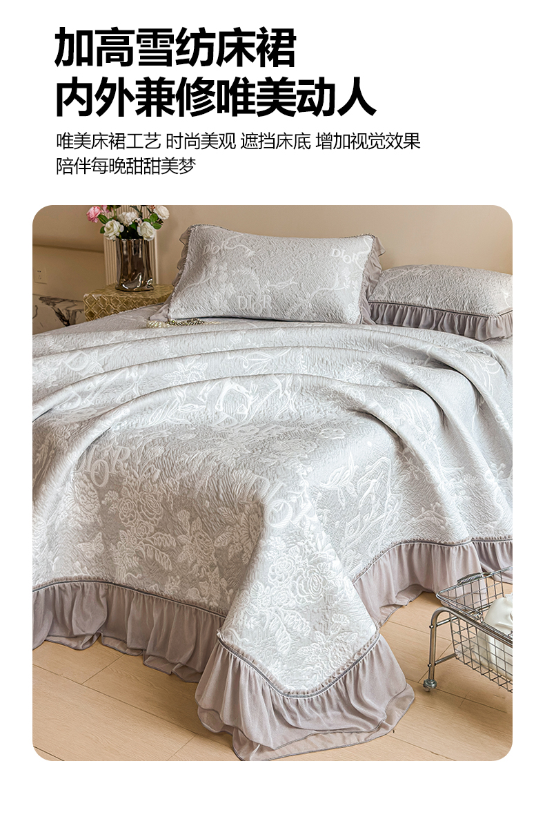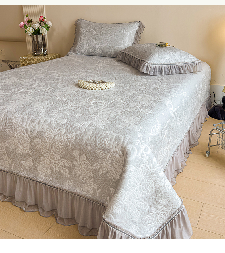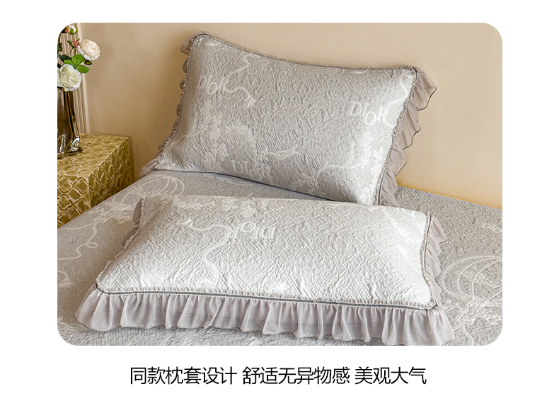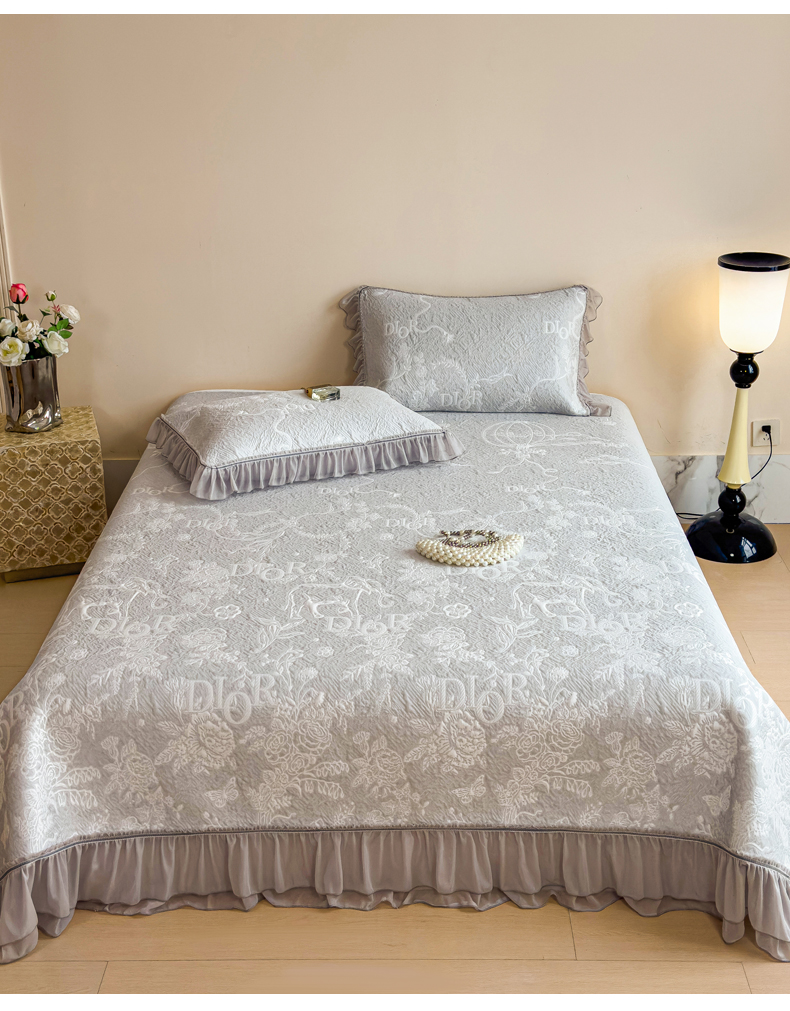 慕木家纺 2026新款A类三明治复合乙纶提花冰豆豆花边床盖款床迪奥风系列(提供买家秀) 迪奥玫瑰-灰